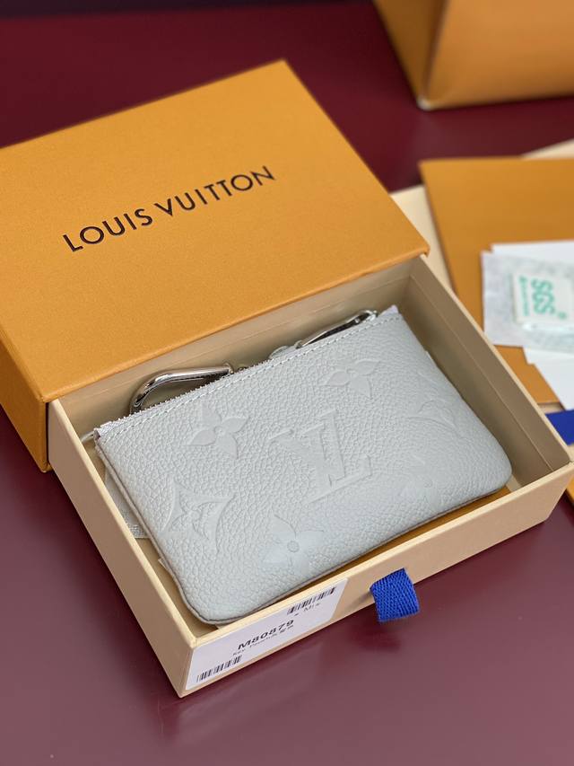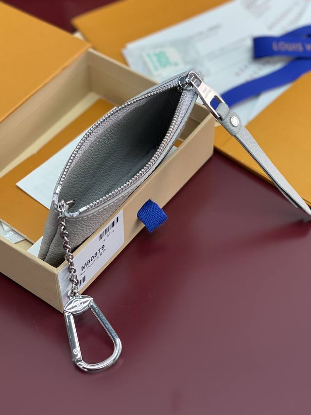 Factory Price: M80879 Gray Fog! Variable Chip! This key holder features Monogram Empreinte leather, embossed with the classic Monogram pattern, combining elegance with practical functionality. A zipper secures cash and cards, while a hook and chain fasten easily to a handbag or belt. Details: 12 x 7 x 1.5 cm (Length x Height x Width).