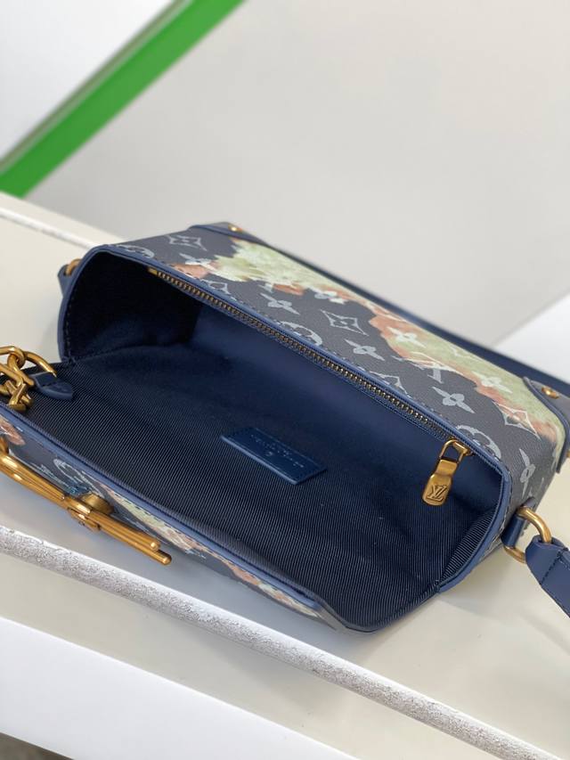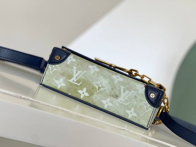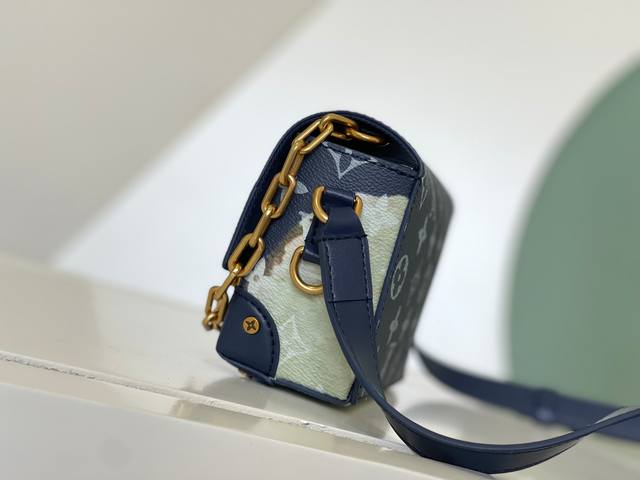 Factory Price: p Haiyuanwai, Single Home Sale M82900. The new Steamer series messenger bags, featuring blue floral silkscreen prints, infuse the brand's traditional New Classics collection with exquisite design. The Oo [Handshake] [Handshake] Monogram Eclipse canvas and classic Steamer chain elements complement each other perfectly. The black floral chain square box bag and cover bag are easy to carry. The front flap and magnetic closure ensure secure storage. Dimensions: 18 x 11 x 6.5 cm