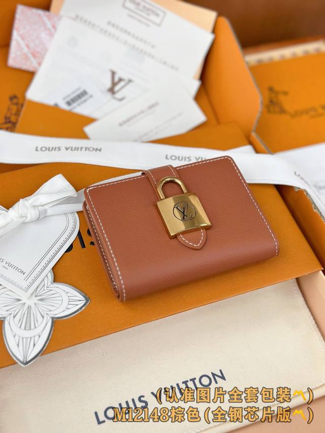 Factory Price p M12148 Brown Grade A All-Steel Personalized Custom Version! Size 163! The Portfoille Locky wallet, while showcasing minimalist design, celebrates Maison Ms's traditional craftsmanship in its new "Portfoille Lowy Compact." Luxurious calfskin is lined with smooth leather and adorned with an antique-style, exquisite gold padlock. In addition to multiple pockets for coins and bills, the interior features three card slots and is also quite charming. Dimensions: 11 x 8.5 x 2 cm.