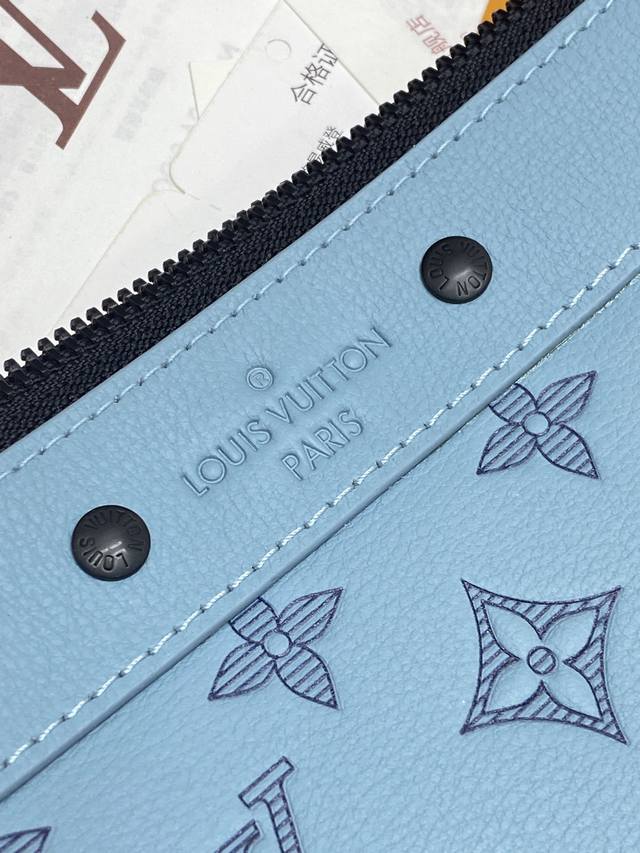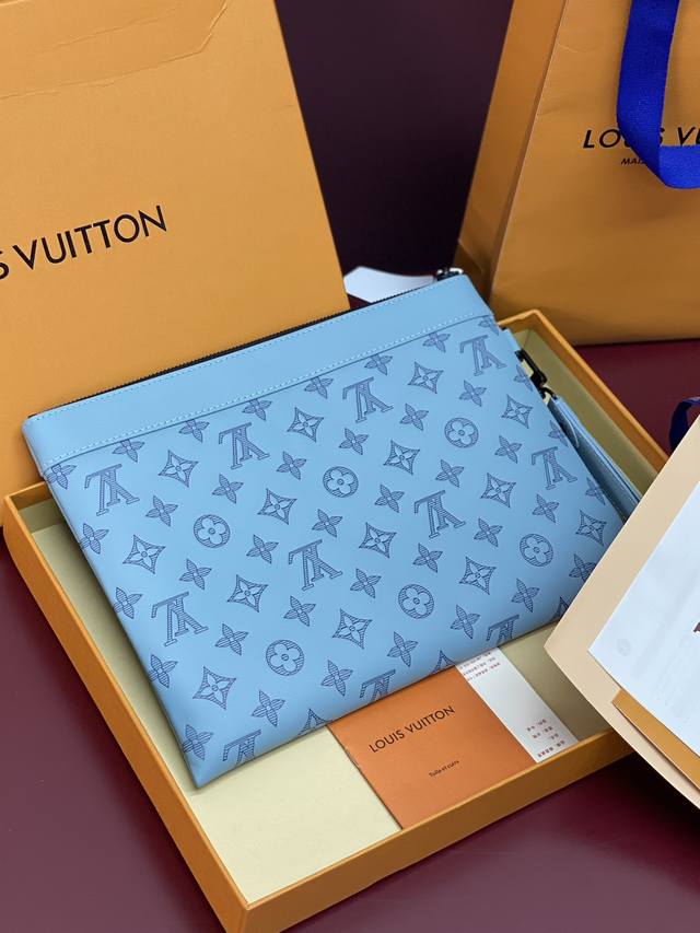 Factory Price p M14914 New Embossed Ice Blue! Made from top-grain cowhide, this season's new Pochette To-Go clutch! This Pochette To-Go clutch is crafted from exquisite Monogram Shadow embossed cowhide leather, featuring a zippered opening and ample space for storing tickets, a phone, and other personal items. It can also be used with a detachable wrist strap. 30 x 21.5 x 1 cm (Length x Height x Width). DDD