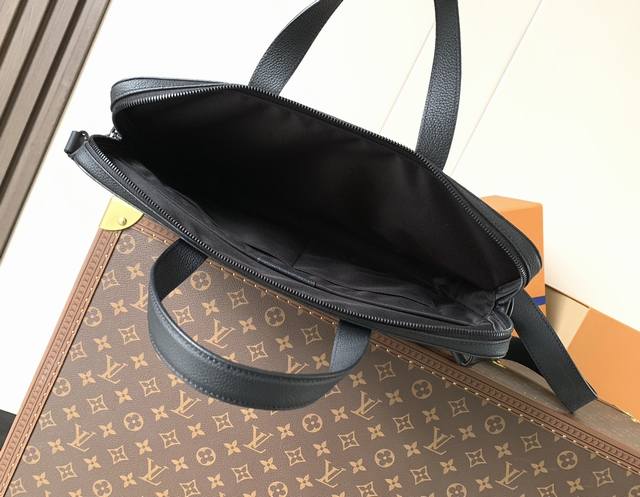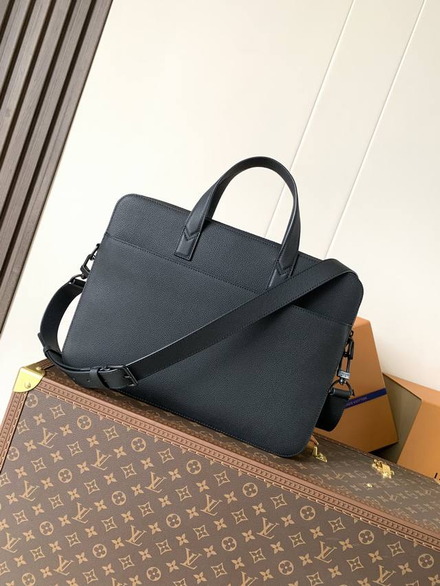 Factory Price p M15258 Black Top-Grain Leather, Top-Tier Original Single-Item, 163C Gate Briefcase. Made of waxed cowhide leather, this briefcase boasts a supple structure and ample space, with a padded inner compartment securely holding a 16-inch laptop. Its slim design features a detachable and adjustable shoulder strap, allowing for easy hand-carrying, shoulder-carrying, or crossbody wear. 30 x 4 x 39.5 cm (H x W x Length )