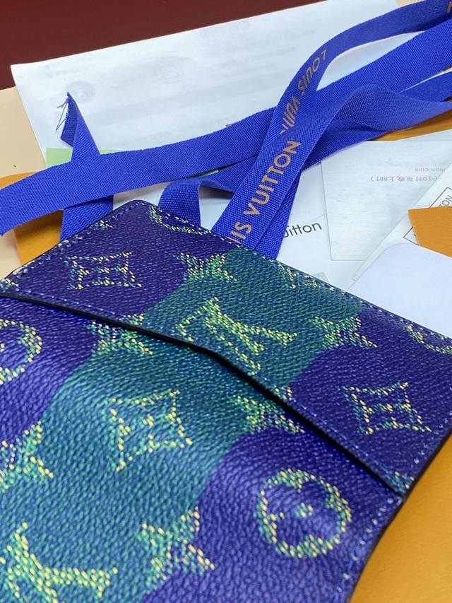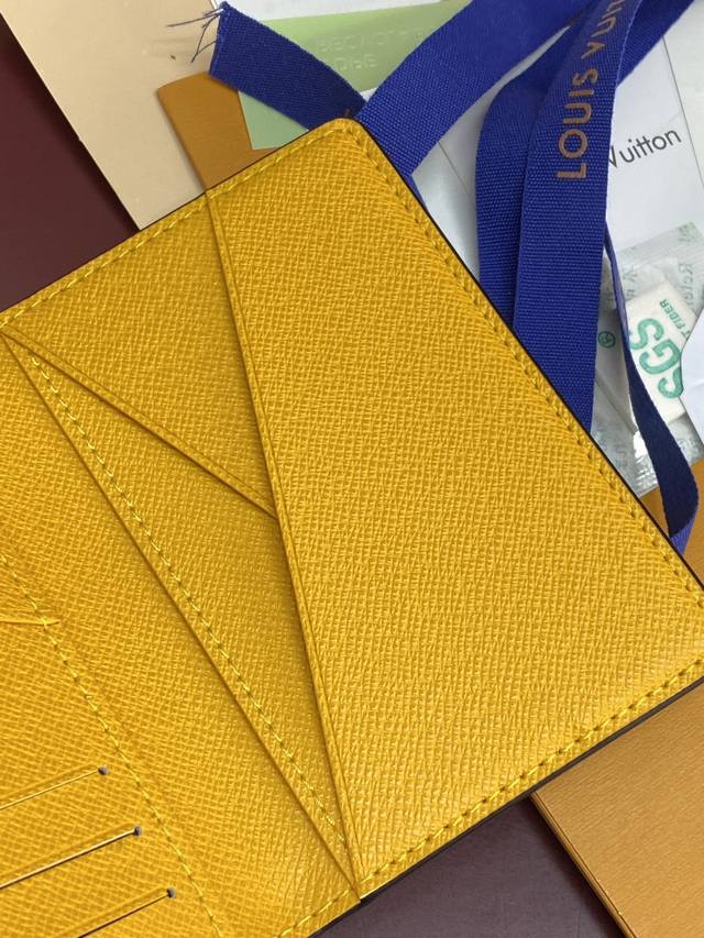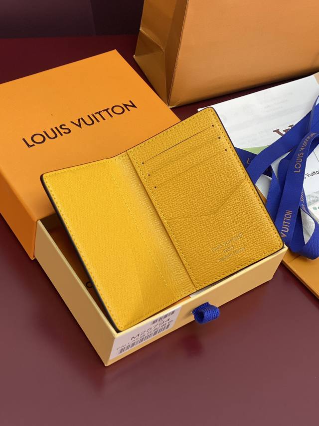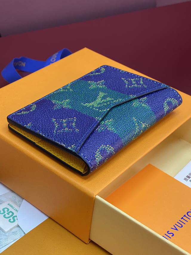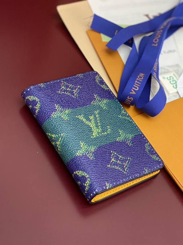 Factory Price p M25794 Pocket Wallet! This pocket wallet is made of Monogram Heritage coated canvas with a striped cowhide leather lining, its fresh color palette inspired by ocean liner designs. The front features the Marque L. Vuitton D