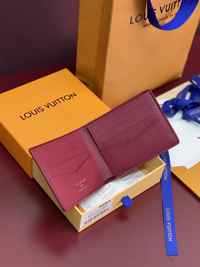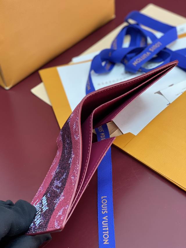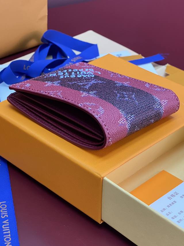 Factory Price p M25795 Striped Purple! Multiple Wallet. This Multiple Wallet is made of Monogram Heritage canvas with a contrasting leather lining, some sections of which are decorated with colorful striped prints. Monogram Heritage is pharrell Williams' reinterpretation of the original Damier pattern, incorporating its warp and weft patterns into the Monogram design for a more modern look. The wallet features multiple cardholders and compartments, easily fitting into a pocket. Dimensions: 11.5 x 9 x 1.5 cm (Length x Height x Width).