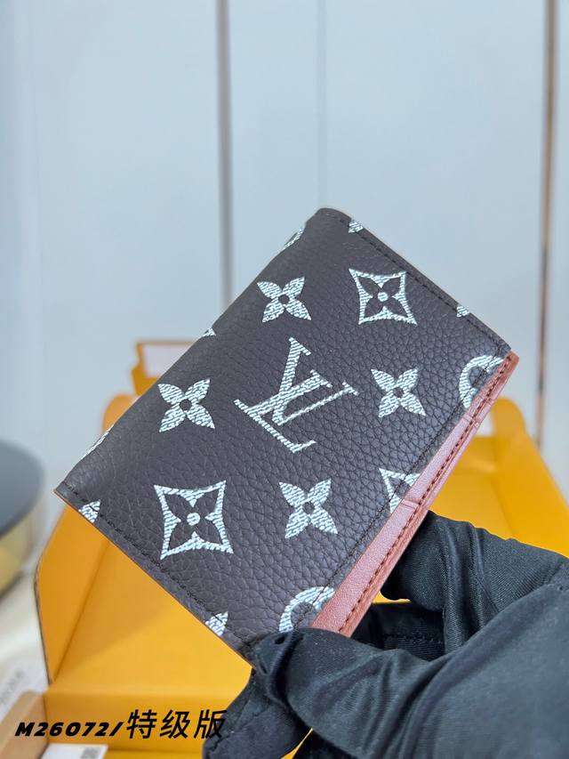 Factory Price p M26072 Brown Premium All-Steel Pocket Wallet is crafted from brushed Monogram leather, featuring a faded Monogram print and distressed texture, paying homage to the leather saddles long used by cowboys. It includes a card slot, an inner pocket, and an outer back pocket. 7.5 x 11.1 x 1 cm Length x Height x Width DDD
