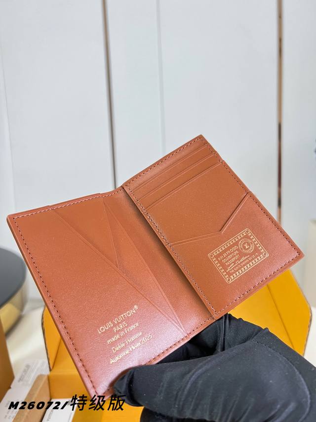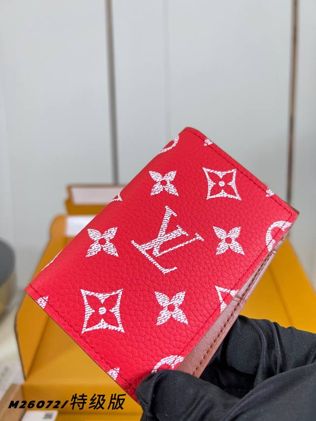 Factory Price p M26072 Red Premium All-Steel Pocket Wallet is crafted from brushed Monogram leather, featuring a faded Monogram print and distressed texture, paying homage to the leather saddles long used by cowboys. It includes a card slot, an inner pocket, and an outer back pocket. 7.5 x 11.1 x 1 cm (Length x Height x Width)