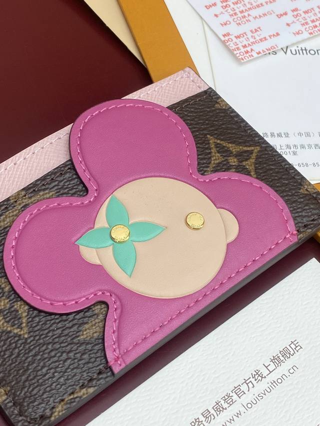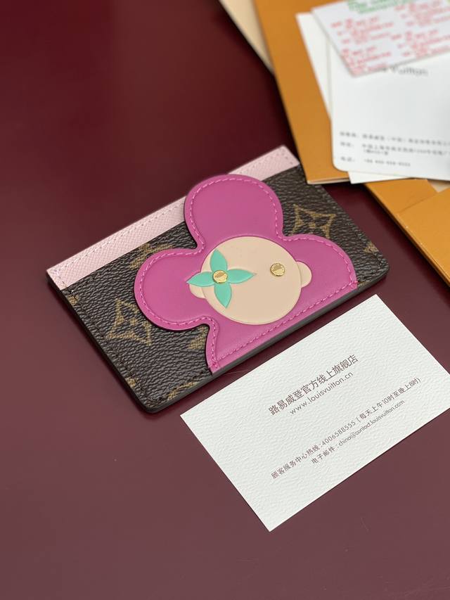 Factory Price p M26625 Christmas Edition! High-quality card holder. This Vivienne card holder features a Monogram canvas top with soft leather trim, using fresh colors to depict the brand's mascot in a playful way, making it a perfect gift for Vivienne enthusiasts. The large inner compartment is convenient for storing cards and tickets, while the outer card slots further enhance storage space. Dimensions: 7 x 0.5 x 11 cm (H x W x Length).