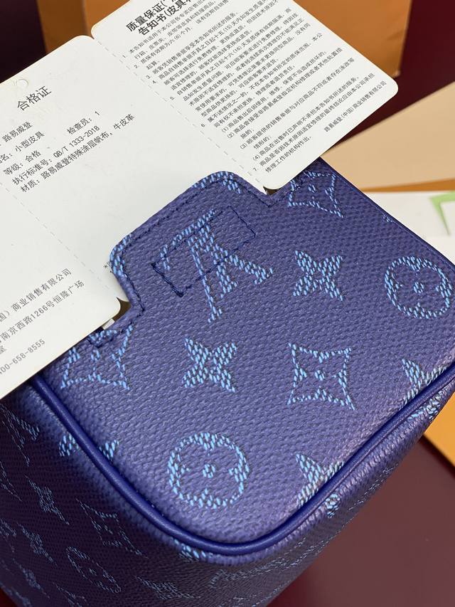 Factory Price p M27158 Blue! Chip Version! Dopp Kit Mini Toilet Bag! This Dopp Kit mini toilet bag is made of brightly colored Monogram Heritage coated canvas with cowhide leather details. The double-zippered wide opening makes it easy to access toiletries, and the washable fabric lining adds to its functionality. DDD 13 X 12 X 20 cm Ddd Height X Width X Length DDD