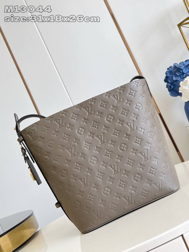 Factory Price: p. Premium Original M13044 Light Green Embossed. This All In Large Handbag features signature Monogram Empreinte leather, cleverly crafted into a two-part bucket bag design. The adjustable shoulder strap continues the brand's trunk-making heritage. The top edge can be opened or closed, allowing for a seamless transition between a rounded and full silhouette and a flat, minimalist silhouette. The spacious size easily accommodates a laptop and other daily necessities. 31 x 18 x 26 cm (H x W x D)