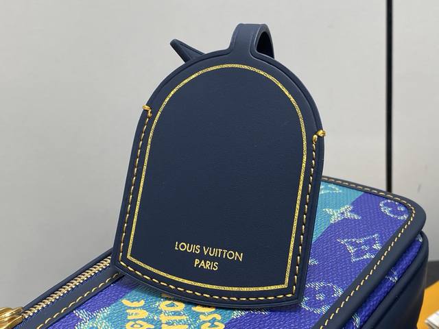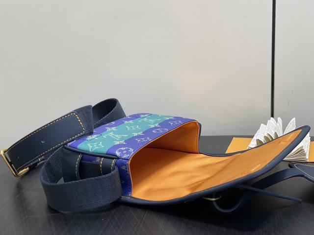 Factory Price: p. Premium Original M13173 Blue Colorblock Men's Business Bag, Bosphore Mini Handbag. Named after the brand's vintage Bosphore Hr collection from the 2000s, this Bosphore Mini Handbag features clean lines and a compact shape for comfortable carrying, while the detachable name tag adds a touch of classic style. An adjustable fabric shoulder strap crosses the accordion loops, creating a refined detail alongside the zippered front pocket. Dimensions: 12 x 7 x 19 cm.