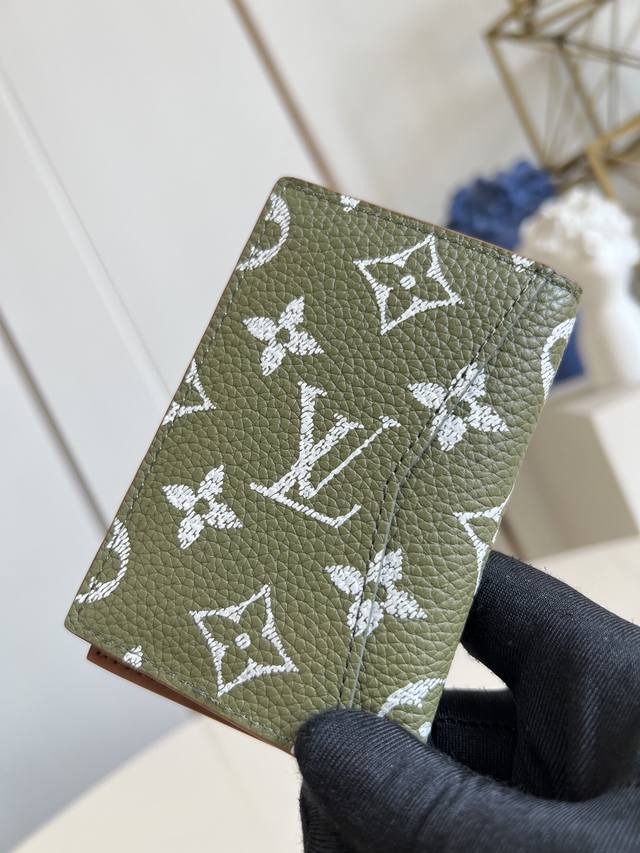 Factory Price: p. Premium Original M26072 Military Green. This pocket wallet is crafted from brushed Monogram leather, featuring a faded Monogram print and a distressed texture, a nod to the leather saddles long used by cowboys. Features a card slot, interior pocket, and rear exterior pocket. 7.5 x 11.1 x 1 cm (Length x Height x Width