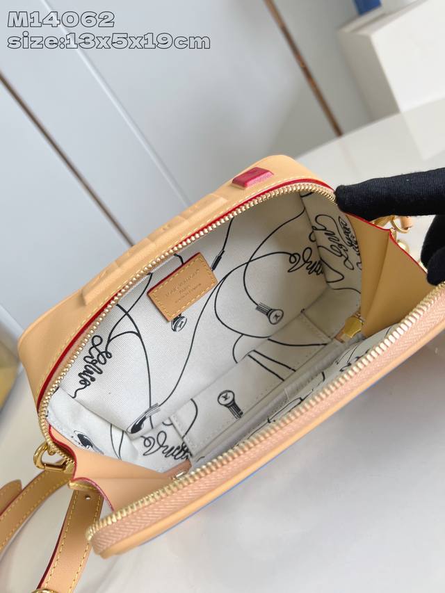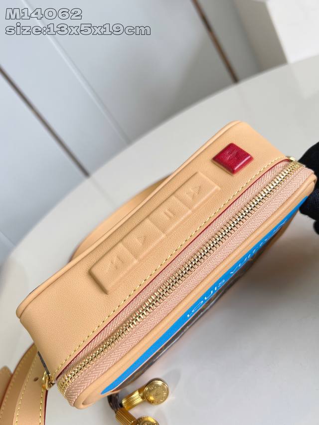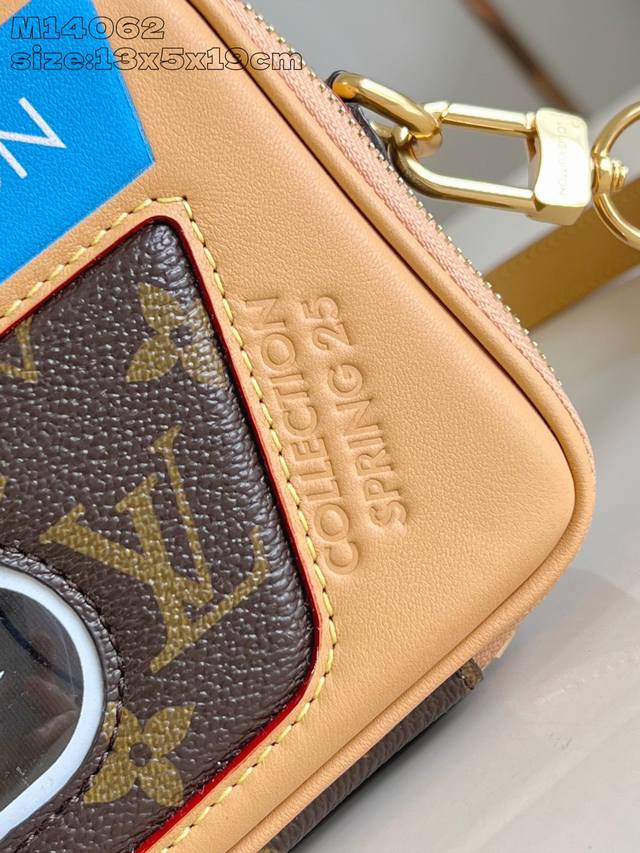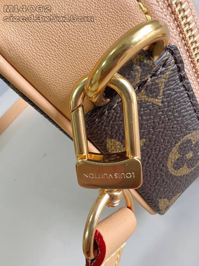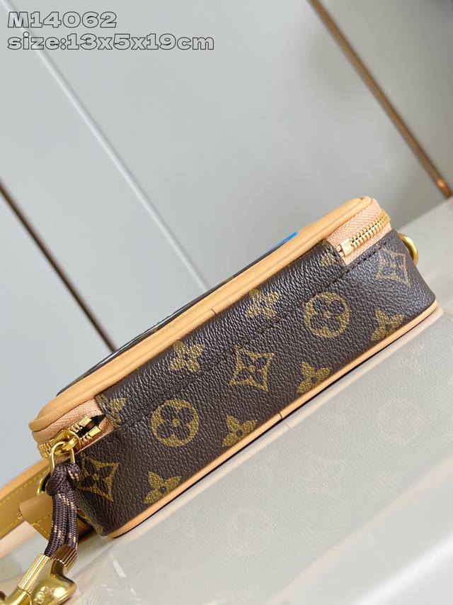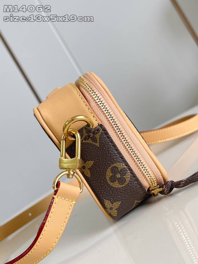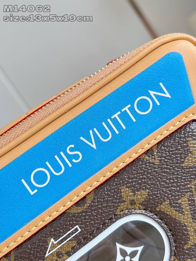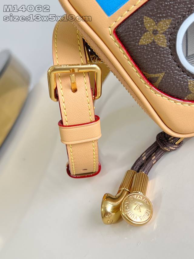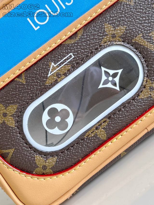 Factory Price P Top Original M14062 Baladeur Wearable Wallet The handbag combines cow leather and Monogram coated canvas, with details such as horizontal opening and closing, rough buttons on the top and transparent small windows on the front, telling the retro inspiration of the first generation of cassette recorders. The zipper head is decorated with earphones designed by Pharrell Williams, echoing the traditional headphones. 13.5 X 5.5 X 19 cm height X width X length