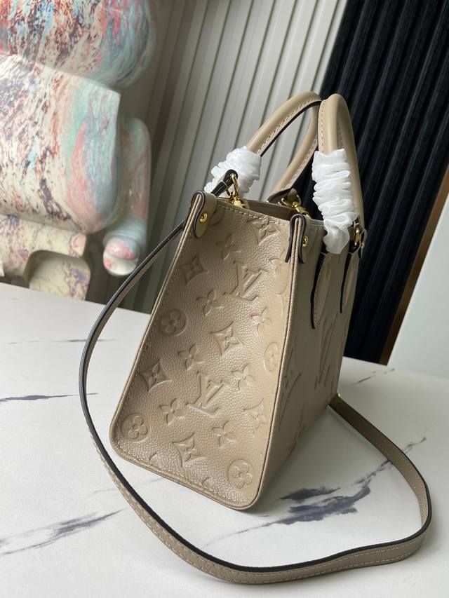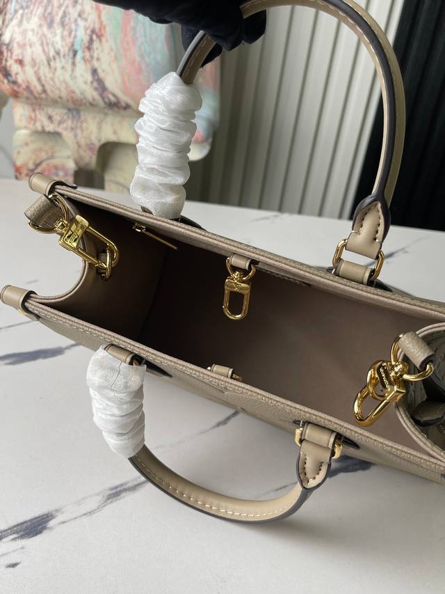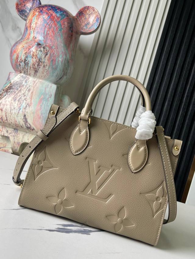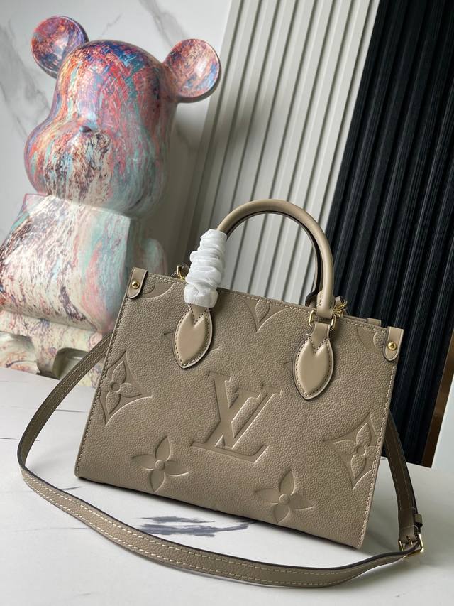 Factory price p Top original single-handedly photographed M45653 Grey embossed Onthego Small Tote. Inspired by the classic Sac Plat handbag from 1968, this miniature version is crafted from Monogram Empreinte leather embossed with the Giant Monogram pattern. It can accommodate an iPad Mini and other daily necessities. Flexible handles and an adjustable shoulder strap provide ample carrying options. Size: 25x19x11.5cm