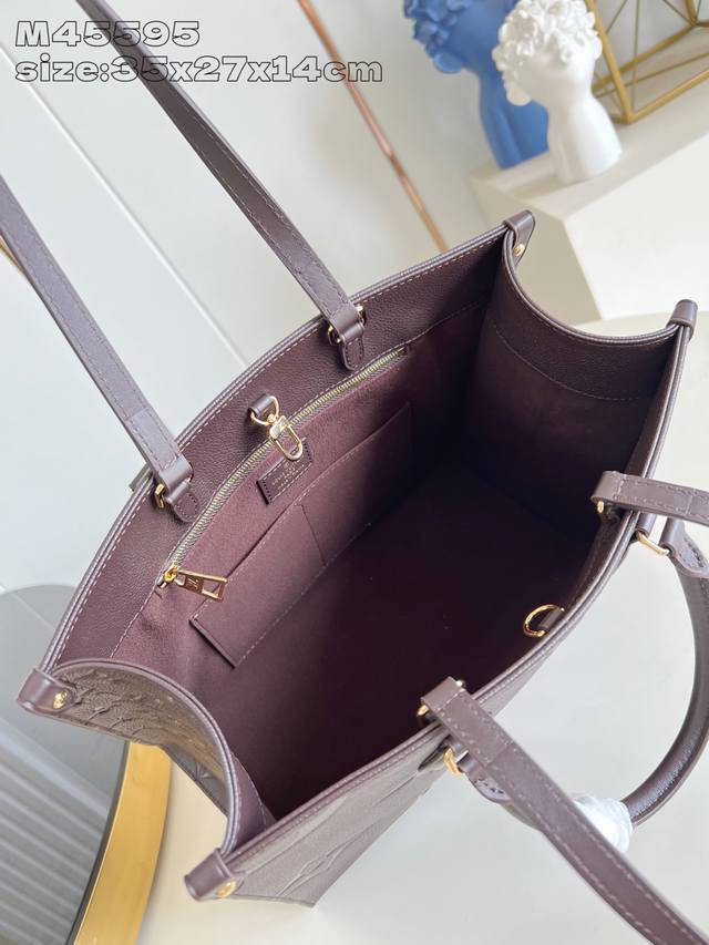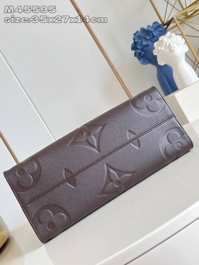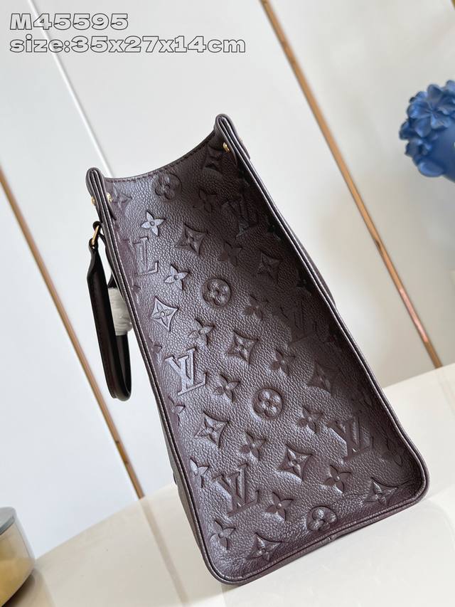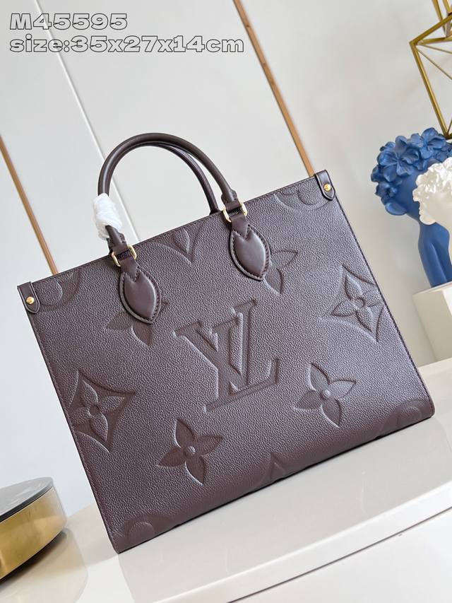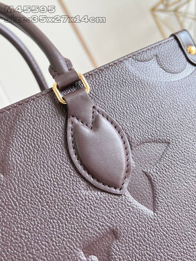 Factory Price P Top-Grade Original M45595 Chocolate Embossed This Onthego Medium-Sized Handbag Is Crafted From Monogram Empreinte Leather, With A Grained Texture Highlighting The Monogram Embossing.