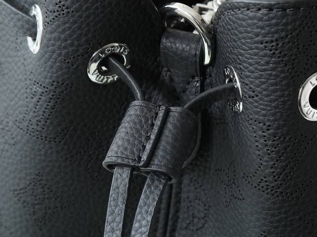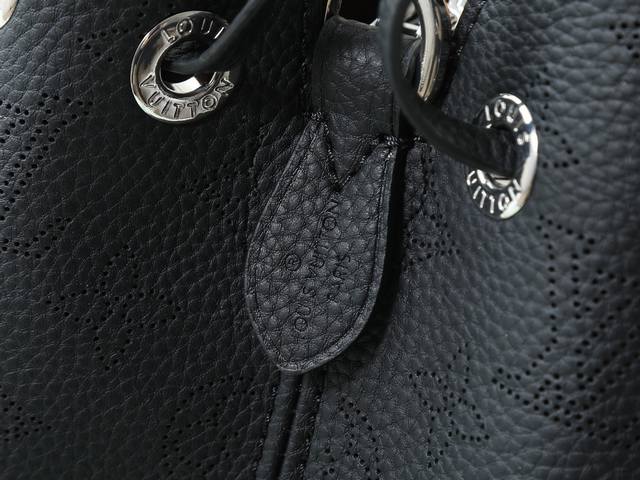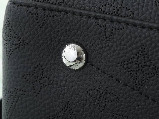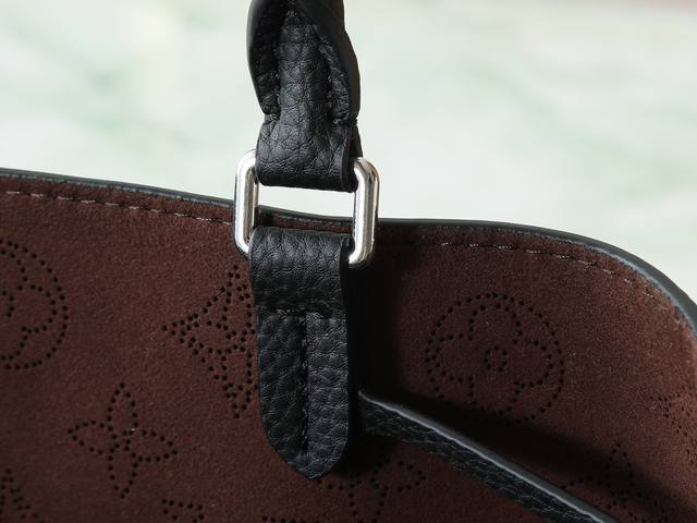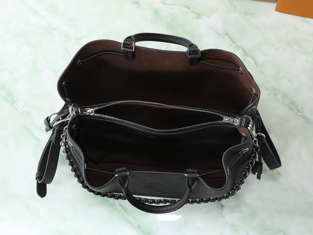 Factory Price (p) Top-Quality Original Home Photo M59200. The black Bella Tote is crafted from soft, perforated cowhide leather, featuring gentle pleating and draping, accented with a jewel-like chain. Its ample construction and neatly trimmed interior meet everyday needs, adding a modern touch to casual outfits. Dimensions: 32 x 23 x 13 cm (