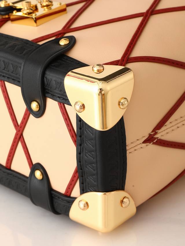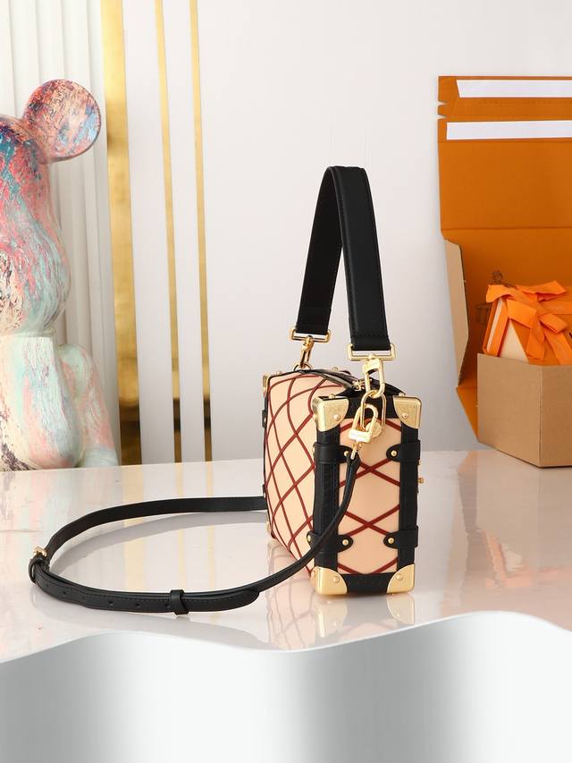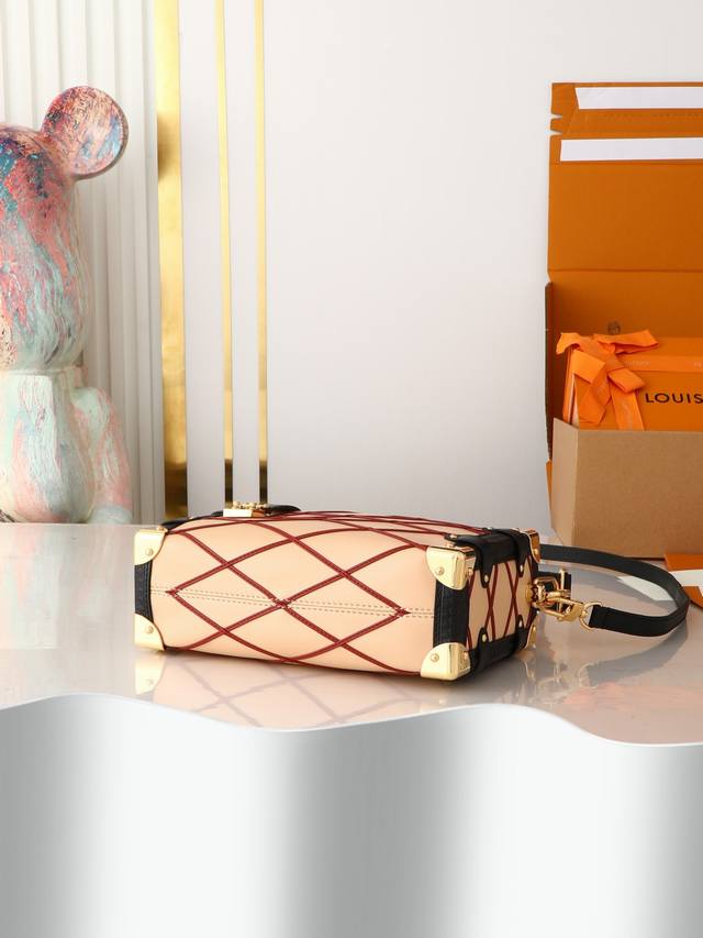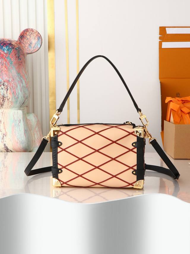 Factory Price p Top-quality original single-handedly photographed M24403 Beige Diamond Quilted Full Leather Soft Box Series Side Trunk PM Handbag M83080. Crafted from quilted lambskin, the diamond quilted design draws inspiration from the house's vintage trunks. The square shape is embellished with gold hardware, including reinforced corners and rivets. It fastens with an S-lock zipper. In addition to the detachable top handle, there is also a detachable and adjustable shoulder strap. Dimensions: 21 x 14 x 6 cm.