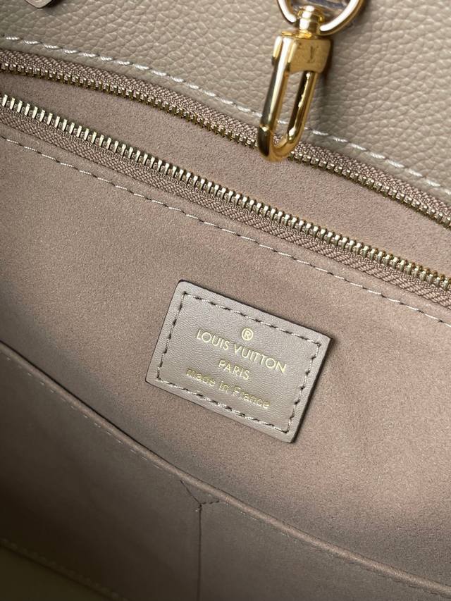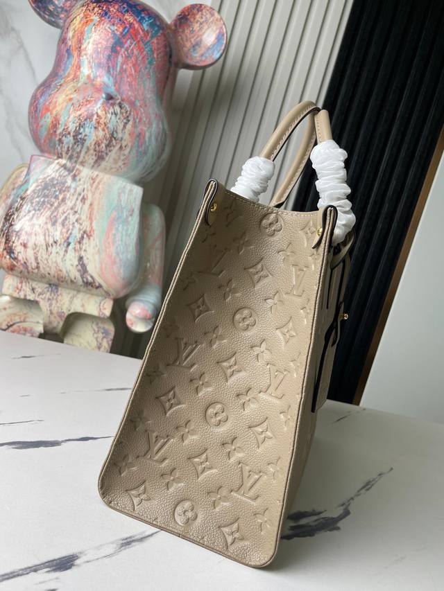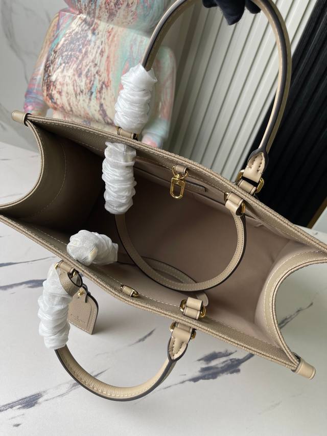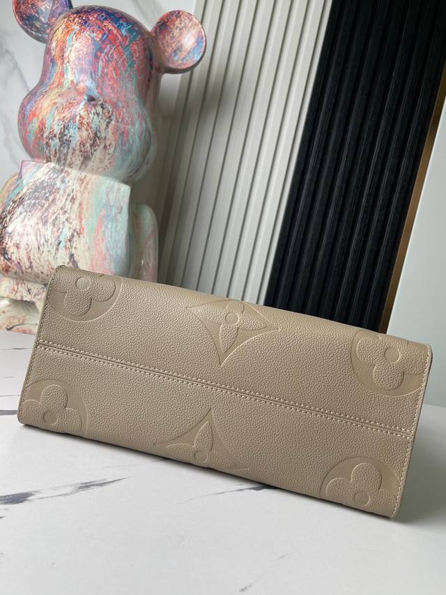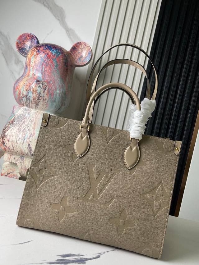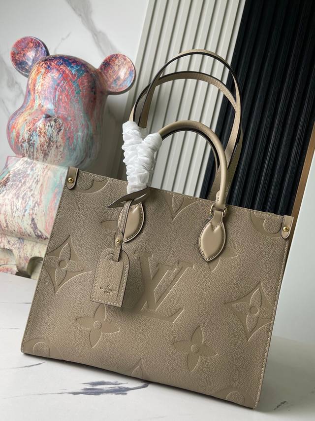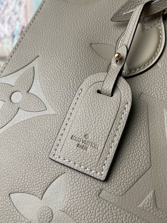 Factory Price (p) Top-Quality Original Single-Owner Photos (M45595, M45607) Gray Embossed. This Onthego Medium Tote features a Monogram pattern that's first printed and then embossed onto soft grained cowhide. Its ample interior accommodates a laptop and other office supplies, and the long and short handles make it easy to carry by hand or on the shoulder. The bag features embossed grained cowhide with grained cowhide trim, a microfiber lining, metal hardware, an interior zippered patch pocket, two interior pockets, and two handles. Detailed dimensions: 34.0 x 26.0 x 13.0