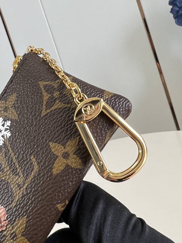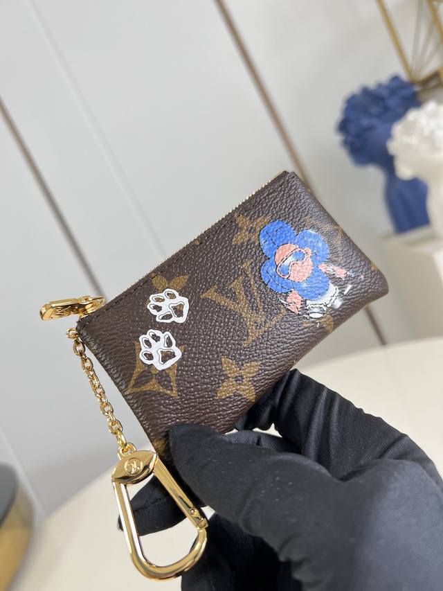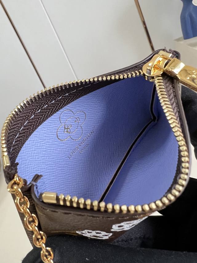 Factory Price P Top-Tier Original M15341 This exquisite version of the classic key and coin purse appears in the Vivienne Wintery Travel collection. Crafted from the iconic Monogram canvas, it features illustrations of the brand's signature doll and two handprint motifs. The compact design is complemented by a gold key hook, exuding style, while the open side reveals a Blue Frost leather lining. 12 x 7 x 1.5 cm (Length x Height x Width)