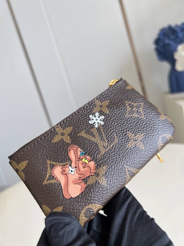Factory Price p Top-tier original M15341 Vivienne Wintery Travel series releases this key coin purse, featuring a Monogram canvas with adorable illustrations and paw prints of the brand's mascot, paired with a lustrous key hook and leather lining, giving the classic design a touch of lively style. 7 x 1.5 x 12 cm (H x W x Length) DDD