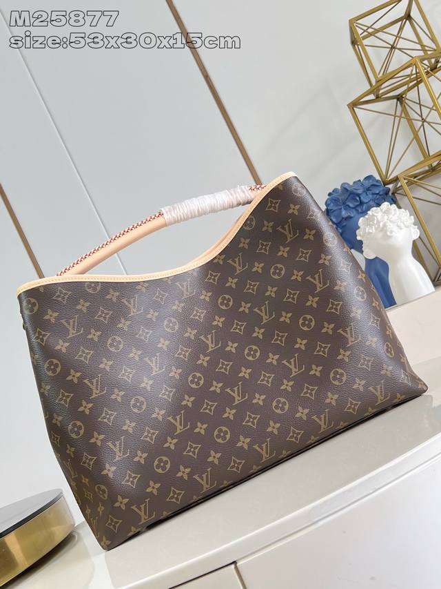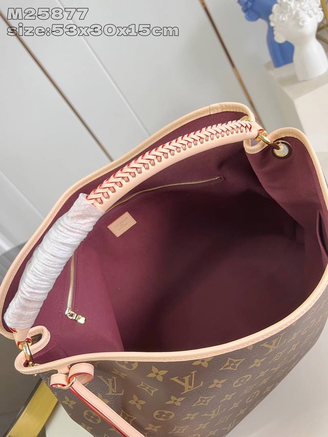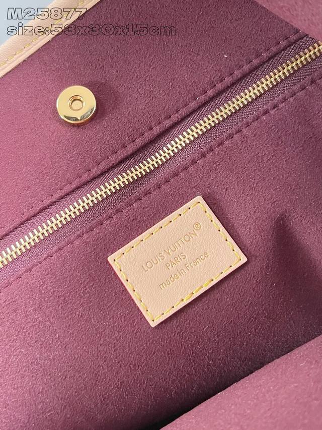 Factory Price P Top-Tier Original M25877 Upgraded Damier Azur Handbag Crafted from supple Monogram canvas, this bag boasts a fresh and feminine look. It features gleaming gold-tone brass hardware and stylish embellishments, while the exquisitely handcrafted leather handles add a touch of luxury. Dimensions: 53 x 30 x 15.5 cm.