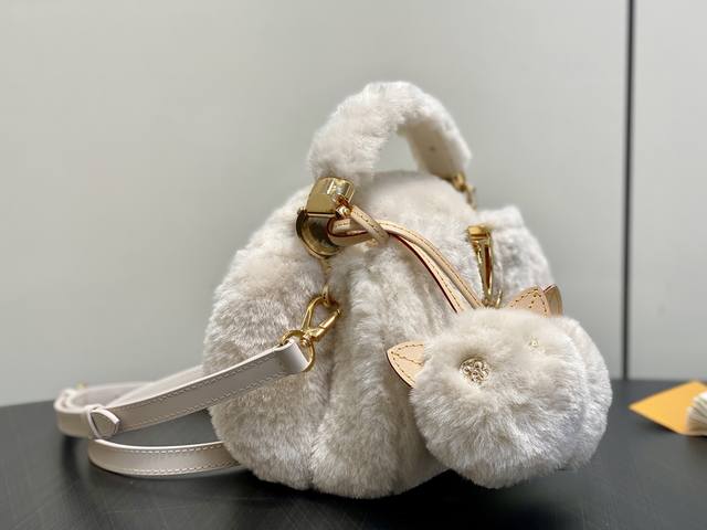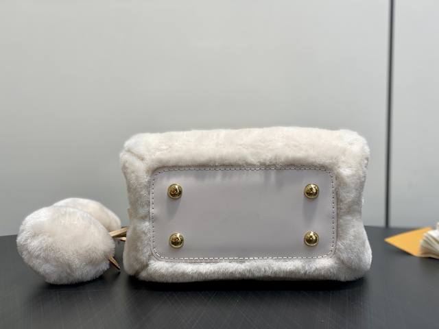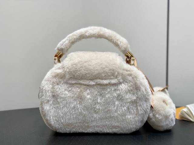 Factory Price p Top-Tier Original M26324 Lambswool Plush Capusnow Handbag (Na Ying Style). This Capusnow HL handbag is made of sheepskin in a clean, sheen, adorned with detachable pom-poms, showcasing a trendy style and adding a touch of fun to the Cozygram series, perfect for both skiing and outdoor use. Its compact design incorporates an inward or outward flap, the perfect size for storing essentials. Striking metal hardware adds a touch of sophistication. Dimensions: 13 x 11 x 20 cm (H x W x Length)