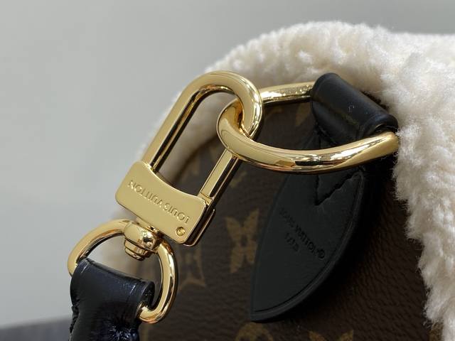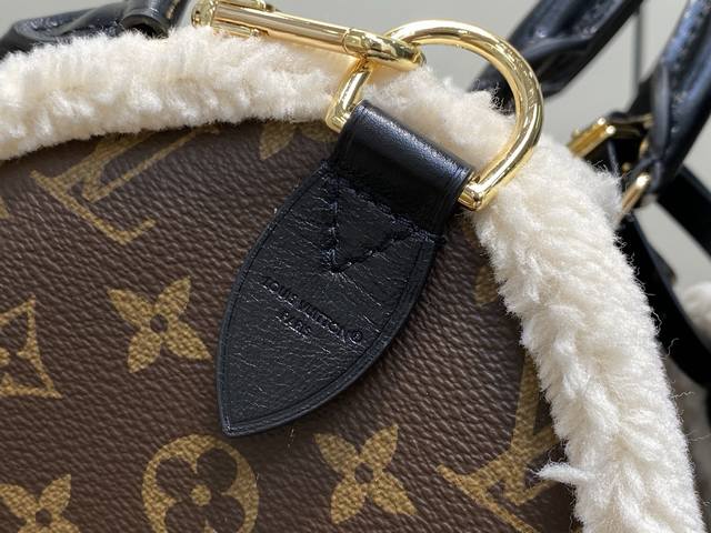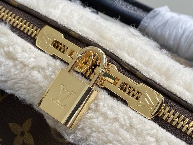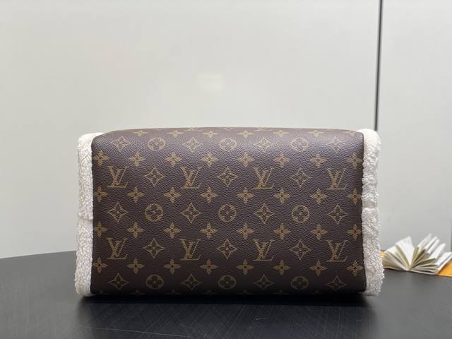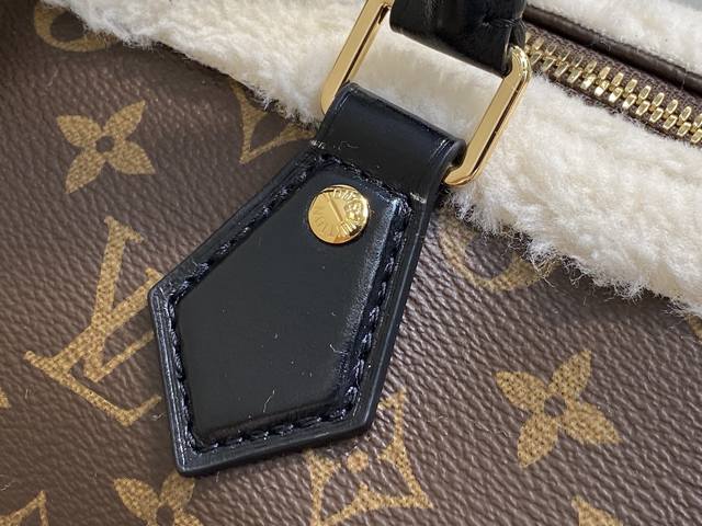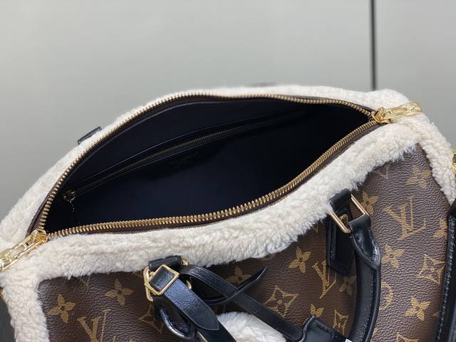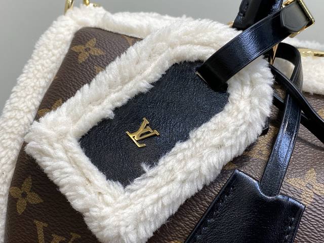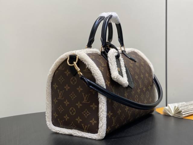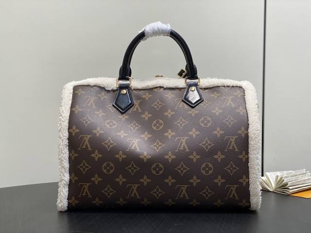 Factory Price p Top-Tier Original M26326 Monogram Plush Speedy Pillow Bag. This Speedy Soft 30 Teddy handbag features Monogram canvas with comfortable sheepskin trim, creating a nostalgic feel. The brand nameplate showcases the brand's travel heritage and exquisite craftsmanship, while the rolled Toron handle on top adds functional detail. Its unique design reflects the season's trends, making it a perfect choice for a snowy look. Dimensions: 30 x 21 x 17 cm (Length x Height x Width)