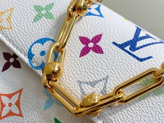 Factory Price p Top-Tier Original M27492 White Takashi Murakami Chain Armchair Bag M27492 White Takashi Murakami Wallet On Chain Ivy Handbag. This handbag is made of Monogram Xph canvas and inspired by the 2000s Sac Recoleta handbag. It features a card slot and zippered interior pocket for everyday essentials. The chain and adjustable leather shoulder strap are detachable, allowing for both shoulder and crossbody wear. Dimensions: 23.5 x 12 x 4.3 cm. DDD