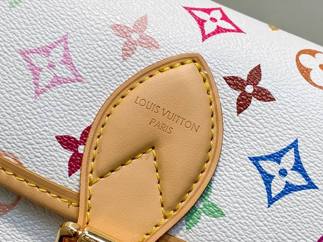 Factory Price p Top-Tier Original M27866 White Takashi Murakami Baguette Diane Handbag. This Diane handbag comes with one leather shoulder strap for underarm carrying and one embroidered shoulder strap for shoulder or crossbody carrying; both are detachable. The capacity is sufficient for everyday use, easily accommodating even a large phone. The leather buckle is decorative but actually uses a magnetic closure, which is quite convenient. There's a compartment in the middle for easy organization, and a zippered area for valuables. Dimensions: 25.0