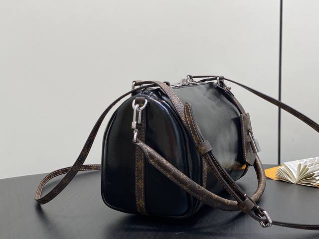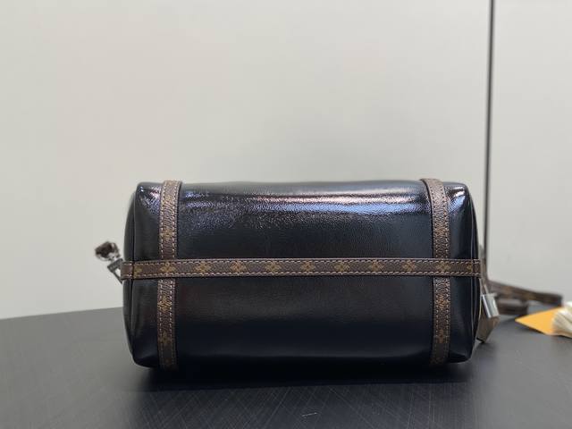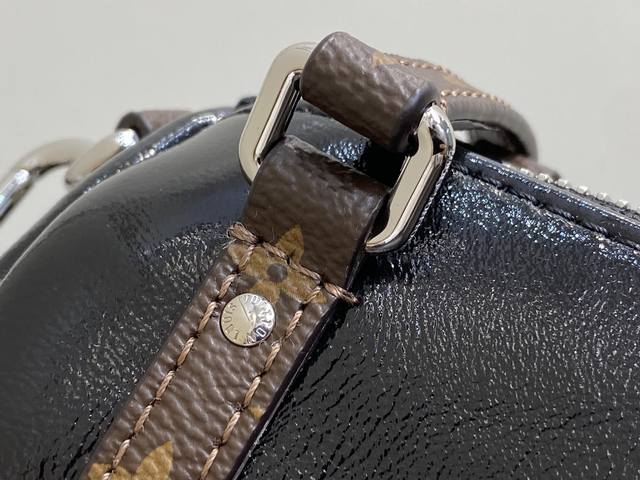 Factory Price p Top-Tier Original M27920 Black Patent Leather Speedy Pillow Bag, Express Small Handbag. This classic Express small handbag showcases the brand's Monogram Saga logo, exuding a rebellious rock 'n' roll vibe. Crafted from cowhide leather with cowhide trim, the lining is adorned with the iconic Monogram pattern. The key pouch and padlock both gleam and can be fastened to the zipper pull for a unique touch. 17 x 13.5 x 26 cm (H x W x Length) DDD