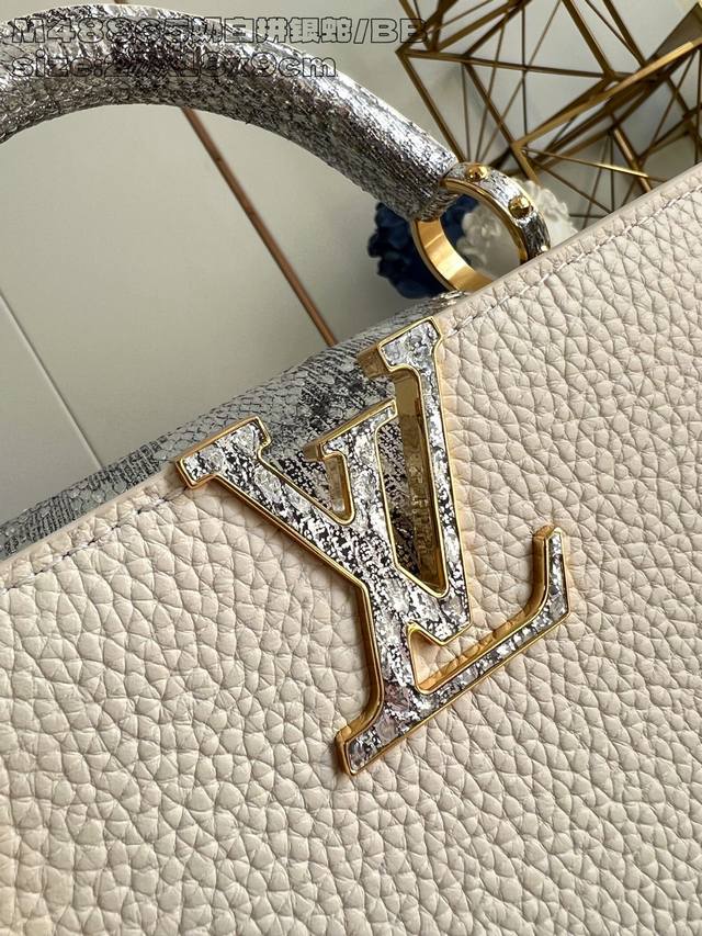 Factory Price p Top-Tier Original M48865 Milk White with Silver Snake Trim Small Capucines BB Handbag. This Capucines BB handbag is crafted from deep-dyed Taurillon cowhide, with luxurious python leather used for the handles and flap. Whether carried by hand or over the shoulder using the detachable shoulder strap, it allows you to express your individual style. 27 x 17.3 x 9 cm (Length x Height x Width)