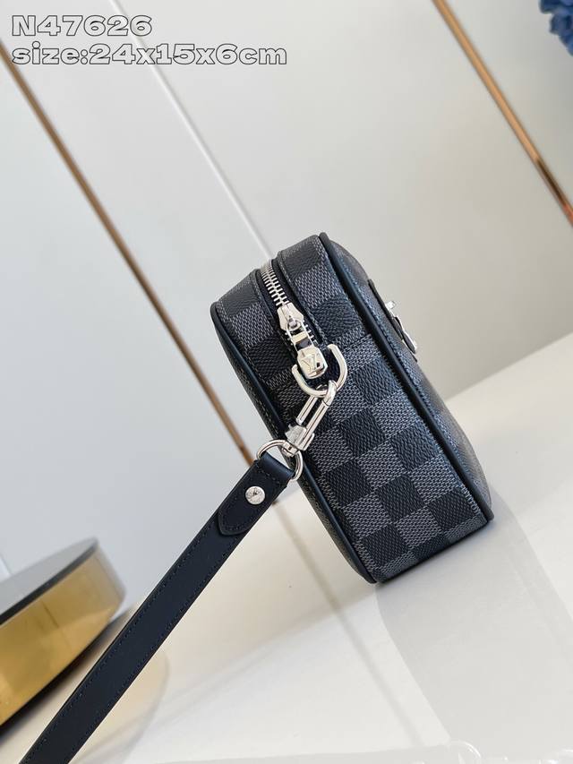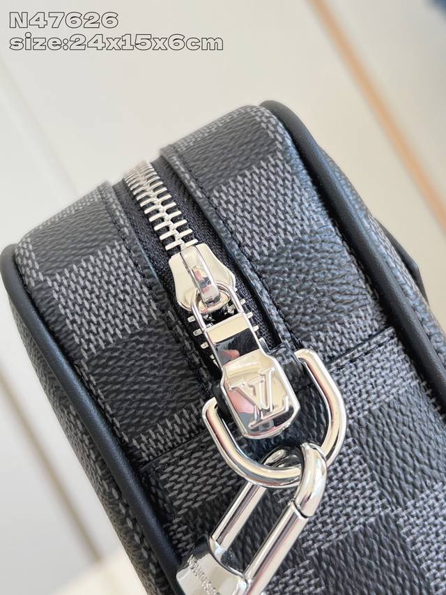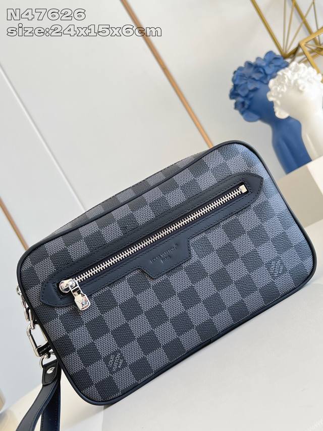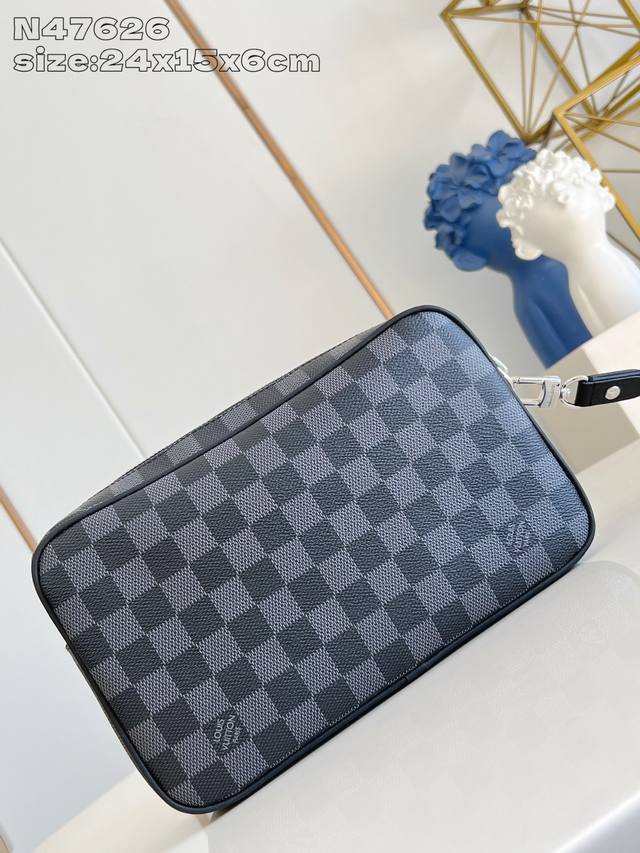 Factory Price p Top-Tier Original N47626 Black Check Pochette Kasai Pouch. This pouch, made of Damier Graphite canvas, features an external zippered pocket, making it perfect for storing small everyday essentials. The interior includes ten business card compartments, one slip pocket, and one double slip pocket. It can be carried as a clutch or with the detachable wrist strap. 24.5 x 15.5 x 6 cm (Length x Height x Width) DDD