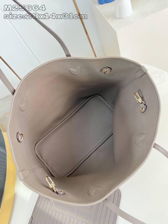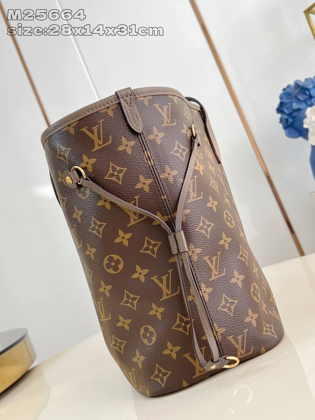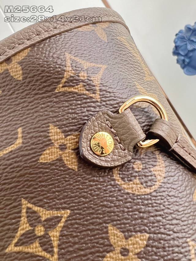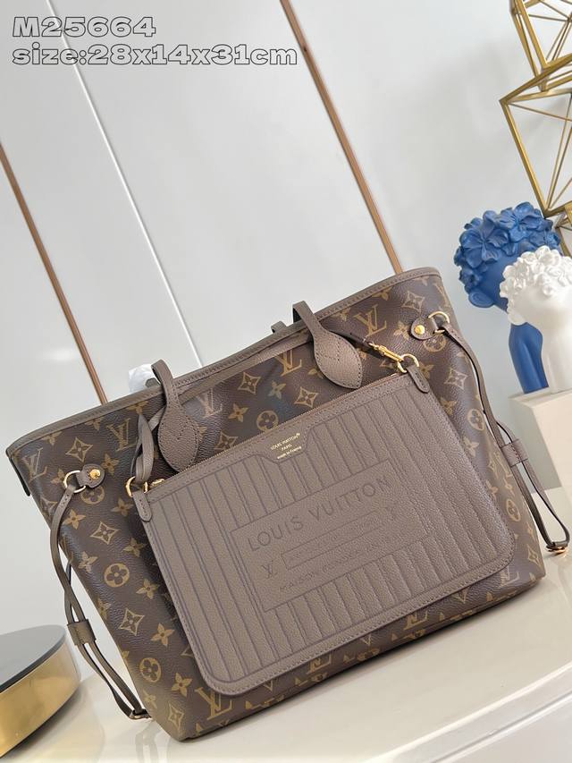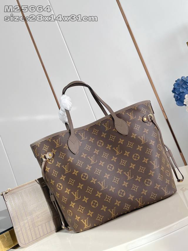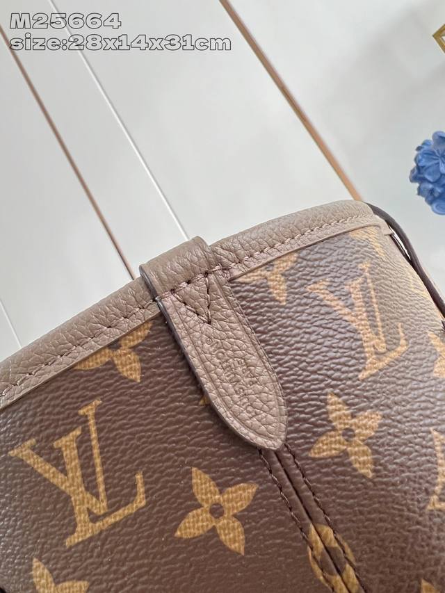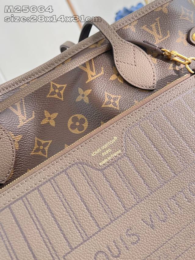 Factory Price p Top-Tier Overseas Original M25664 Steel Hardware Version Neverfull Inside Out Medium Handbag from the Back To School series. Featuring a dual-sided design in canvas and leather, enriched by cowhide trim and elegant metal hardware. The spacious design includes a detachable zippered pocket for neatly organizing everyday items such as laptops. 28 x 14 x 31 cm (H x W x Length)