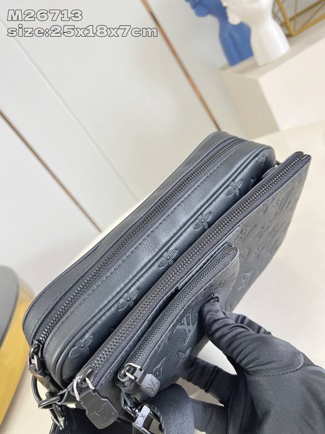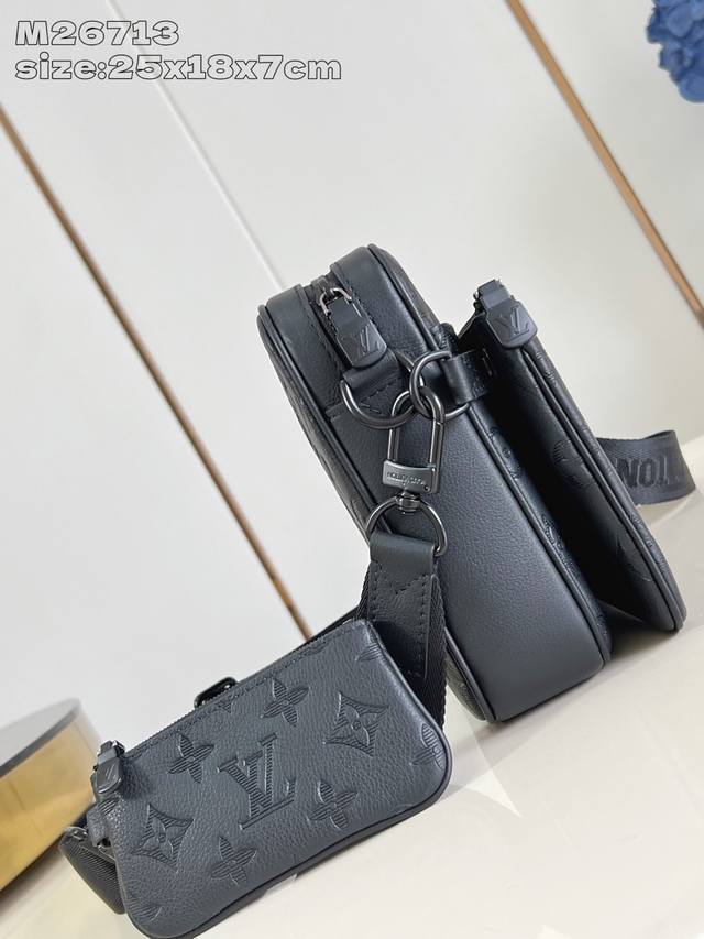 Factory Price p Top-tier overseas original M26713 Black Trio Messenger Bag. Made of supple Monogram Shadow calfskin, featuring a Monogram Shadow leather strap and main compartment. The zippered front pocket, shoulder strap, and attached coin purse are all detachable. The shoulder strap is also adjustable for a comfortable fit. 25 x 18.5 x 7 cm (Length x Height x Width)