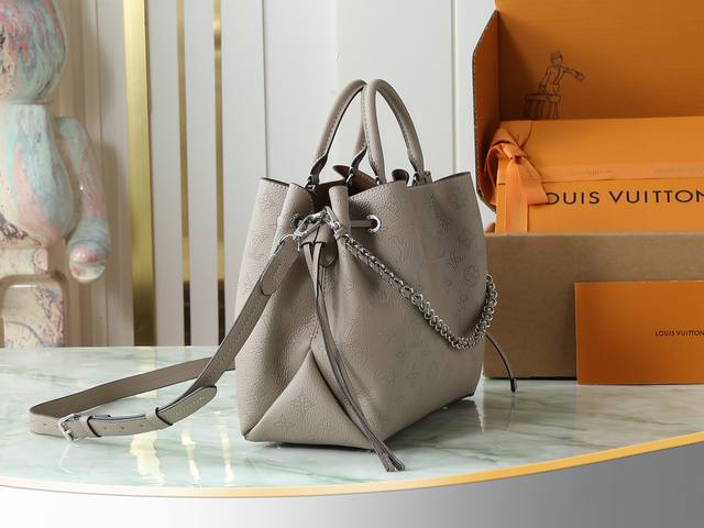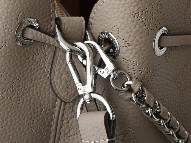 Factory Price: Premium Original, Exclusive Photos. M59201 Elephant Gray Full Leather Shopping Bag Series M59200. This Bella Tote handbag cleverly blends the design essences of a bucket bag and a tote. Softly perforated cowhide leather creates a delicate drape and drape, paired with a jewel-like chain, adding a touch of trendy style to everyday travel. Dimensions: 32 x 23 x 13 cm (Length x Height x Width