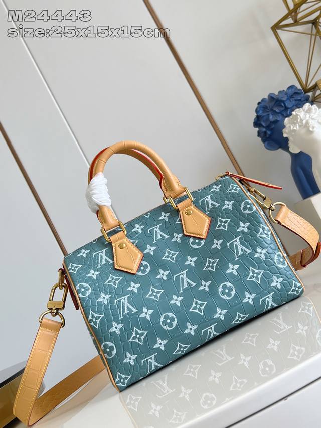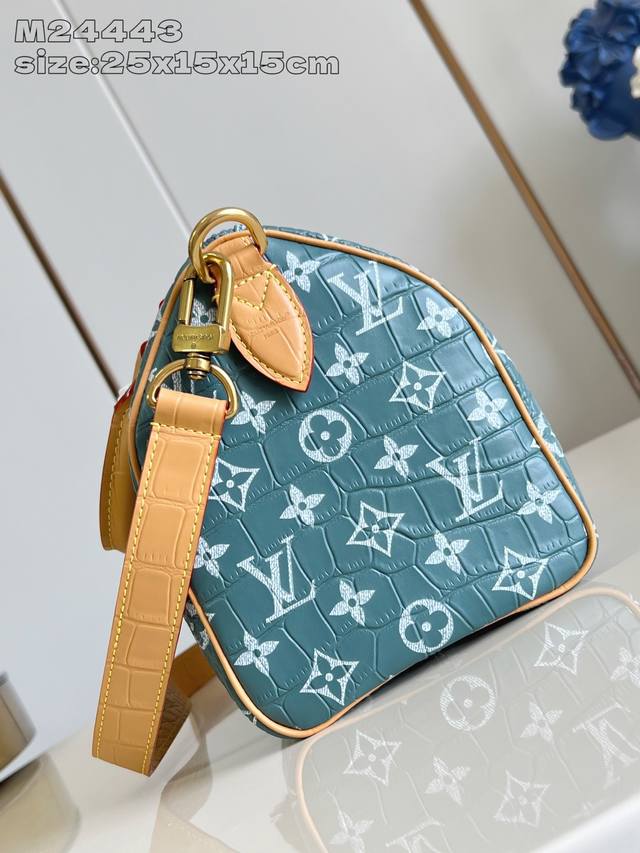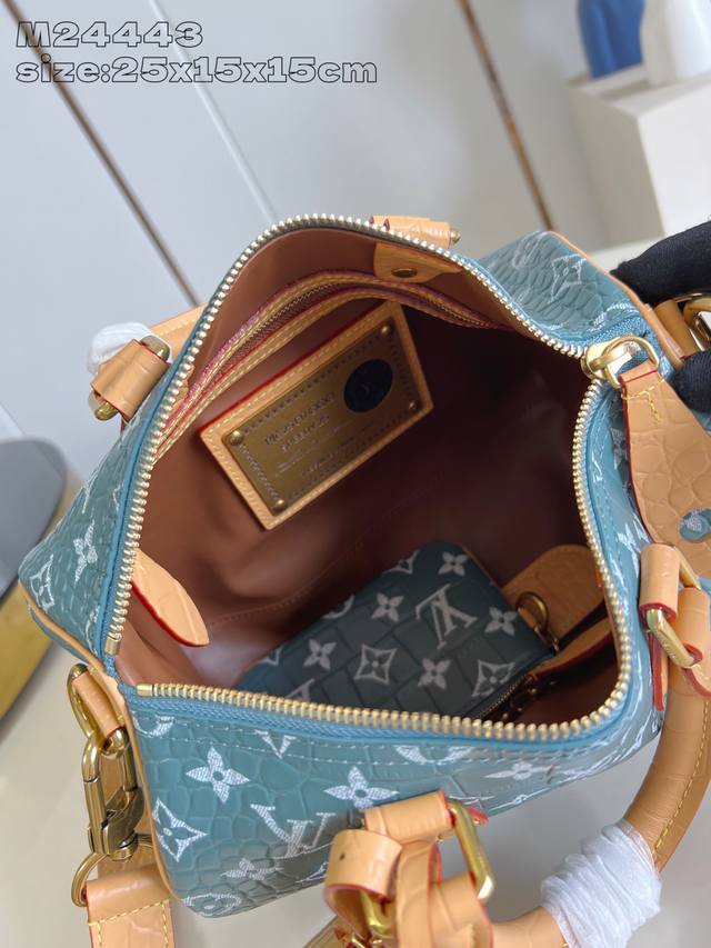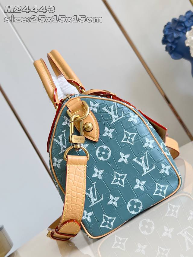 Factory Price: Premium Original M24443 Blue Alligator Leather. This Speedy Bandouli