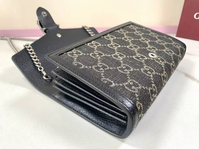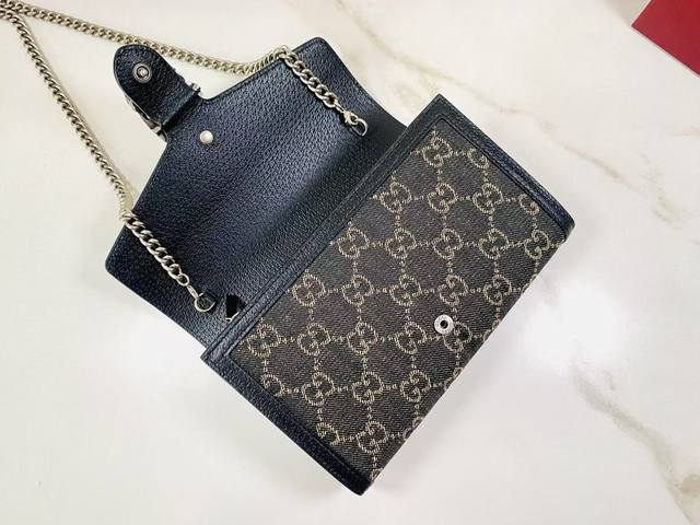 Factory Price. Top-quality original leather, genuine single item with full boutique packaging. Description: Denim series Dionysus series mini shoulder/crossbody chain bag, ebony double G PVC fabric with genuine leather chain mini handbag/wallet, small bag with detachable shoulder strap, ample interior space, perfect replica of the genuine product, top-quality Italian imported cowhide with exquisite workmanship. Model: 401231. Size: 20X13X6Cm. Color: Black/Denim.