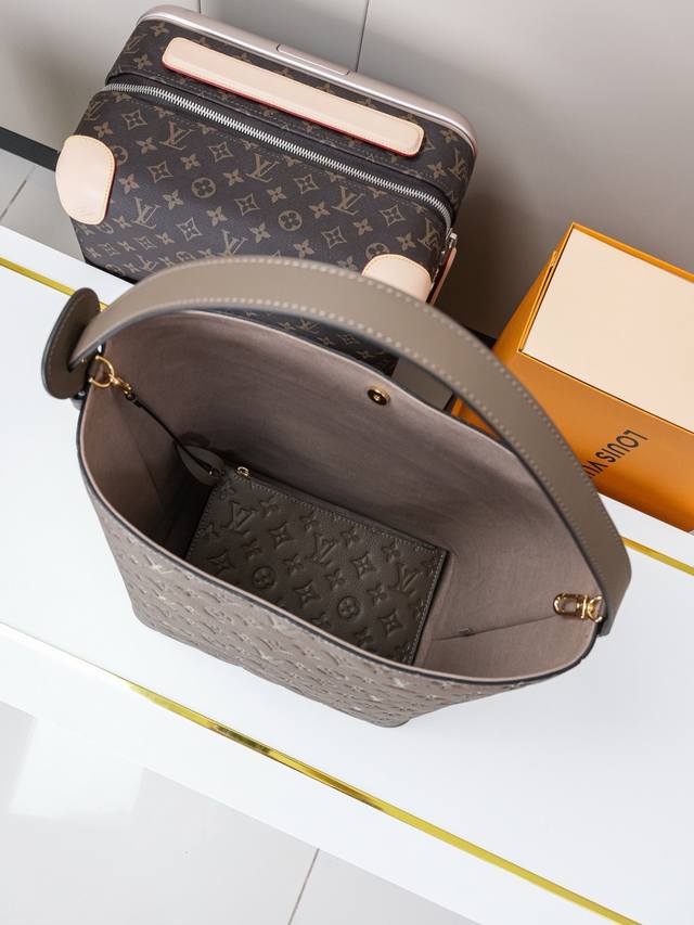Factory Price. Top-quality original leather, top-grade original single item with complete boutique packaging, dynamic chip M25823, grey-brown top-grade original single item, real photos taken against a background. This all-in handbag is made of Monogram cowhide leather with shiny metal hardware, showcasing classic style with the iconic padlock and brand name. The adjustable shoulder strap continues the brand's trunk-making heritage, and the leather shoulder strap adds crossbody and shoulder carrying options. The foldable design allows for flexible shaping, and the ample space makes it a great choice for everyday use. 30.0 X 25.0 X 17.0 cm (Length X Height X Width)