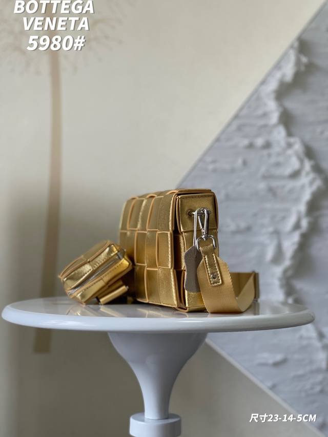 Factory Price. Top-quality original leather, top-grade original single with complete boutique packaging. New Bv Cassette 2-in-1 bag, unisex style. Cool unisex design. Perfect for couples to carry each other. Three-dimensional yet not rigid. Super stylish crossbody bag. Two-in-one design; the small pouch on the shoulder strap can be detached and used separately. Style Number: 5980. Size: 23*14*5cm.