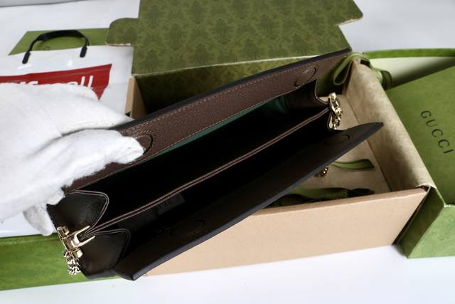 Factory Price. Top-quality original leather, top-tier original single item with complete boutique packaging. Description: The Ophidia series presents a striking new silhouette and function, meticulously crafted in iconic beige and brown color schemes, creating innovative bag pieces with a soft texture. Beige and dark brown Gg canvas, brown leather piping, light gold-tone hardware, green cotton lining, red and green webbing. Model 837428 Brown. Made with boutique-quality imported PVC waterproof fabric and genuine polished brass hardware. Size: 26X17X8Cm. Sf-2017894W.
