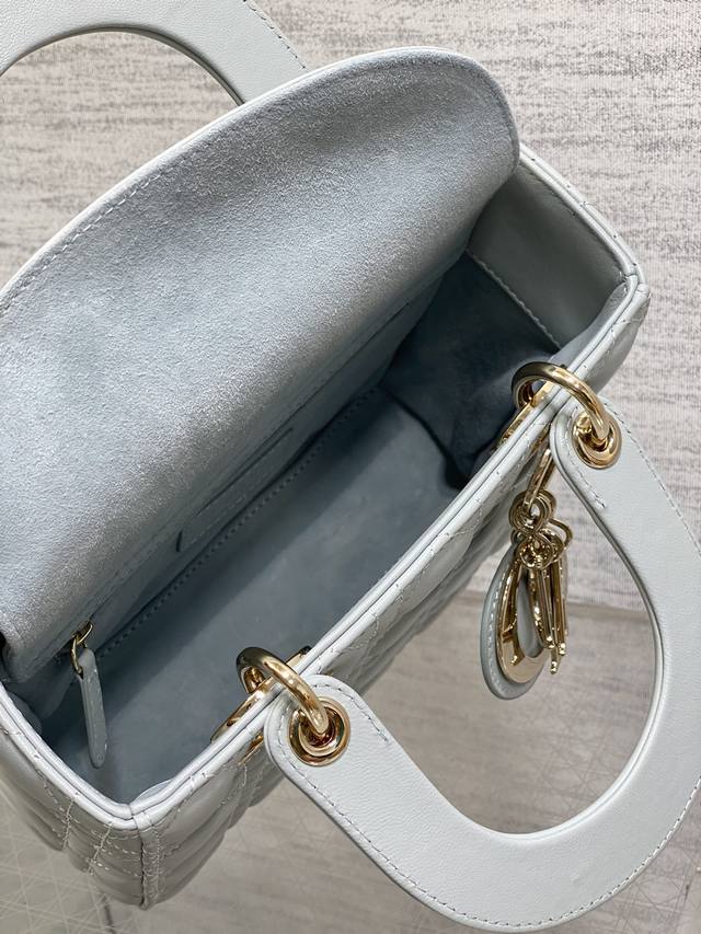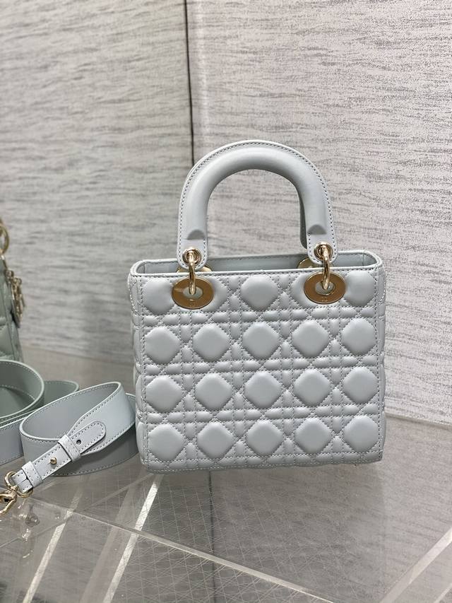 Four-panel lake blue in stock DDD Lady Dior four-panel lake blue series, the latest color for spring/summer, a fresh and clean style, paired with the latest letter shoulder strap, which is even more attractive. Six letters are included, so you can choose your favorite buttons instead of matching the whole set. DDD Size: 20*8*17Cm DDD