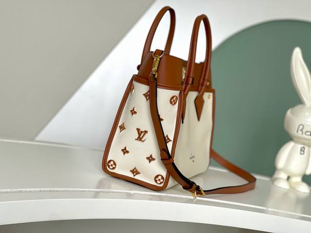 Haiyuan Foreign Single Home Sale M22191 Brown M59842 On My Side Large Handbag This handbag combines delicate canvas, smooth leather trim, and a top handle to embody elegant summer style. The Monogram floral tufted lining and striped canvas lining highlight its classic heritage. The large exterior pockets and ample space easily accommodate everyday needs, and the adjustable shoulder strap allows for crossbody wear. Dimensions: 30.5 x 24.5 x 14 cm