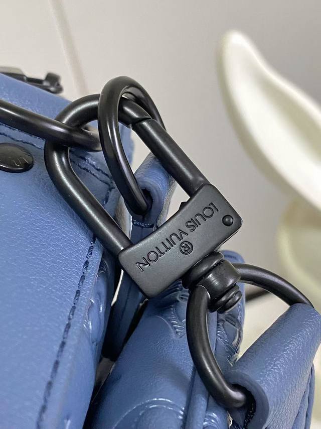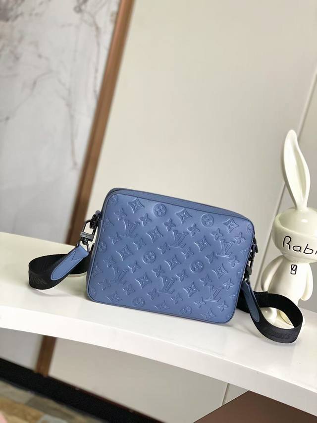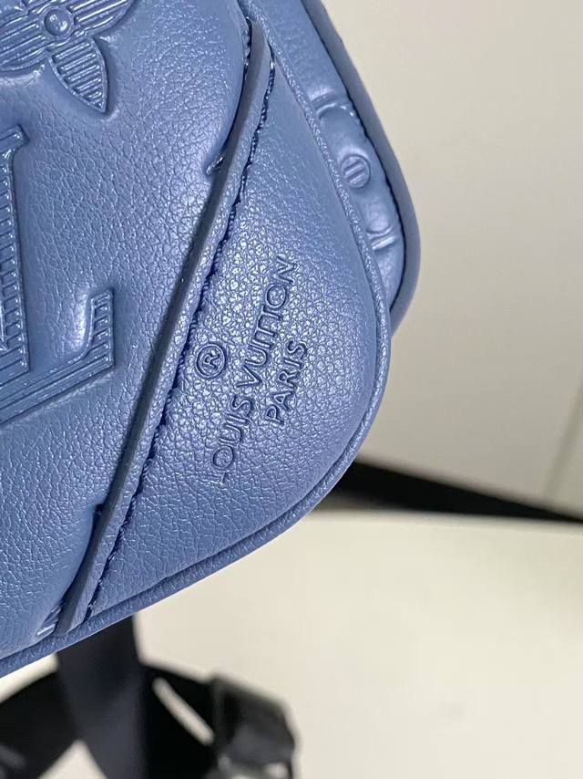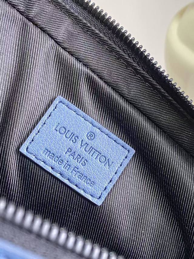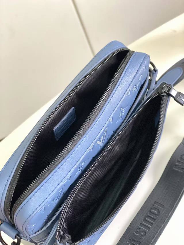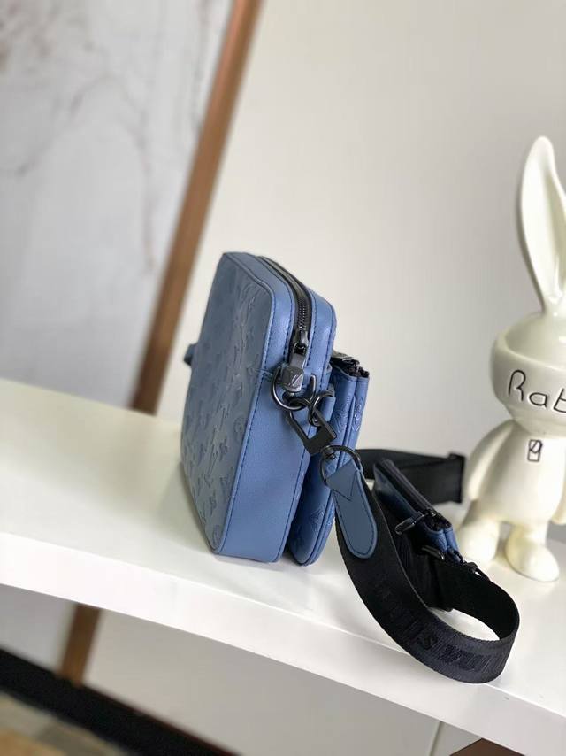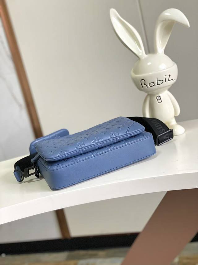 Haiyuan Foreign Single Real Home Shot M14785 Light Blue Full Leather Embossed Top Original Single Variable Code Chip 163C Men's Bag Three-Piece Set Trio M