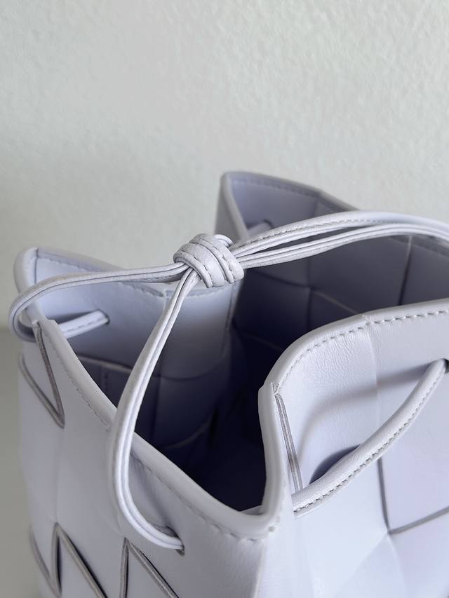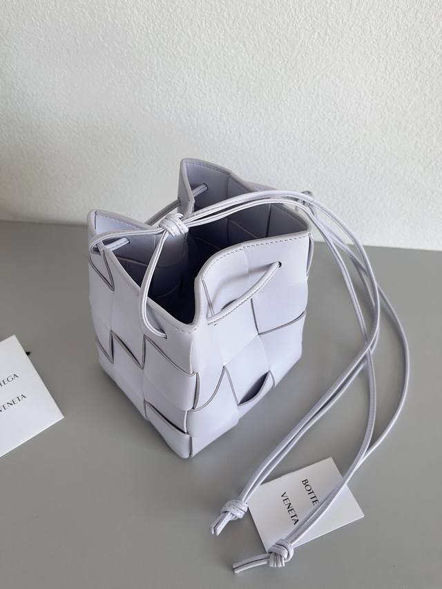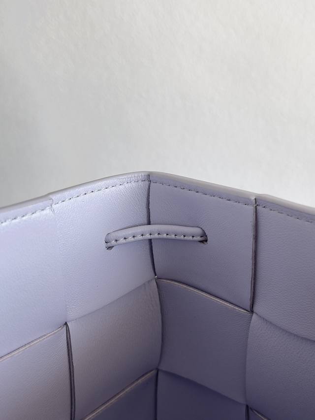 Hand-woven Large Bucket Bag DDD Bv's latest cutie, continuing Daniel Lee's minimalist style. The small size will poke out a little bit if you put your phone in it, but the large size is completely spacious and can hold anything. Made with a mold and purely hand-woven. DDD Style Number: 680218 DDD Size: 18*14*14Cm DDD Color: Joyful Purple DDD