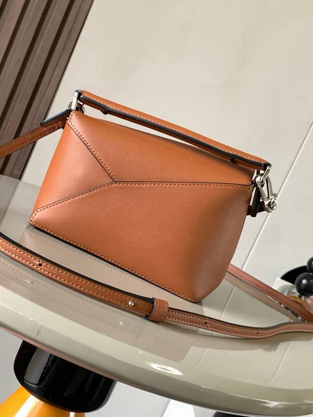 Hot Selling New Version Geometric Bag Mini 18cm Original Imported Nappa Calfskin Puzzle Handbag. This is the first handbag launched by Creative Director Jonathan Anderson for L0Ewe. The rectangular shape and precise cutting techniques create the unique geometric lines of the Puzzle. This mini version is made of classic calfskin leather. The mini Puzzle can accommodate items such as a small vertical wallet, most sizes of mobile phones up to 6.1 inches, and a sunglasses case. It can be carried crossbody, over the shoulder, by hand, or by the top handle. The detachable shoulder strap makes the bag's weight negligible, super practical. Perfect for carrying your phone, small wallet, lipstick, and compact powder without feeling bulky. Start your carefree and enjoyable life from now on! Sizes: 18