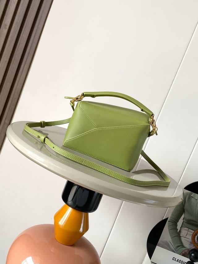 Hot-selling new version geometric bag, mini 18cm, original imported lychee-textured calfskin. The Puzzle handbag is the first tote bag launched by Creative Director Jonathan Anderson for L0Ewe. Its rectangular shape and precise cutting techniques create the unique geometric lines of the Puzzle. This mini version is made of classic cowhide leather. The mini Puzzle can hold, for example, a small vertical wallet, most sizes of mobile phones up to 6.1 inches, and a sunglasses case. It can be carried crossbody, shoulder, hand, or by the top handle. The detachable shoulder strap makes the bag's weight negligible, super practical. Perfect for carrying your phone, small wallet, lipstick, and powder compact without feeling bulky. Start your carefree and enjoyable life from now on! Sizes: 18