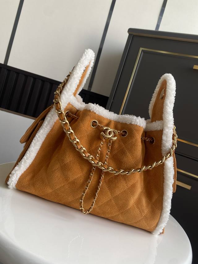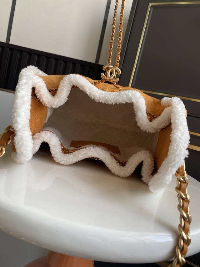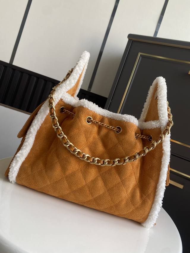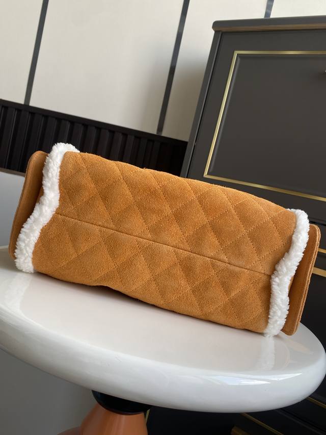 This shopping bag is special because it's made of imported Italian cowhide with edging and decorated with special autumn/winter fur trim.