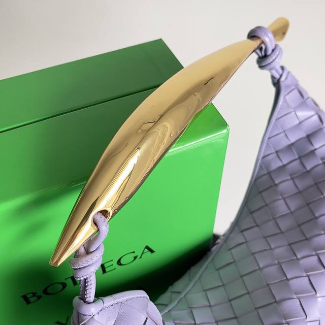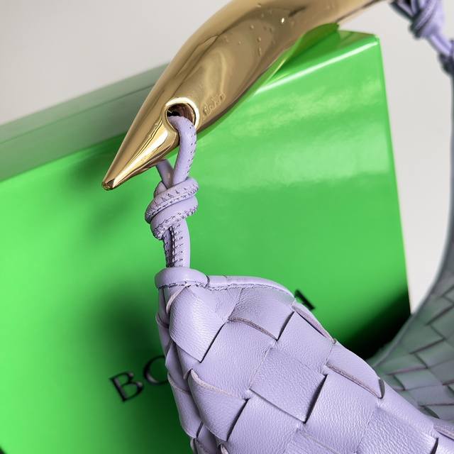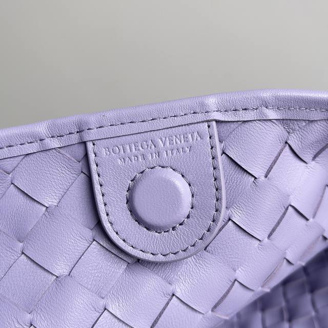 Inspired by the bird in the sky by 20th-century modern sculptor Brancusi, the Muse brass handles feature unique craftsmanship, making each handle one-of-a-kind and embodying a precious sculptural quality. Carrying the Sardine creates a sophisticated and modern look! The Sardine handbag uses Intrecciato weaving to highlight the brand's craftsmanship heritage. The handle design creates a striking contrast, presenting an artistic design concept. The Muse brass finish is completed through multiple processes, ensuring that each handle is unique. Style No.: 716082 Dimensions: 36*3*24cm Color: Wisteria