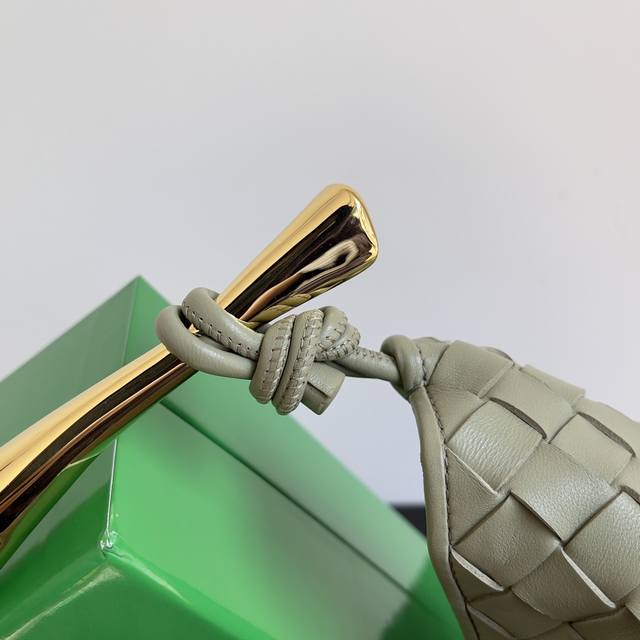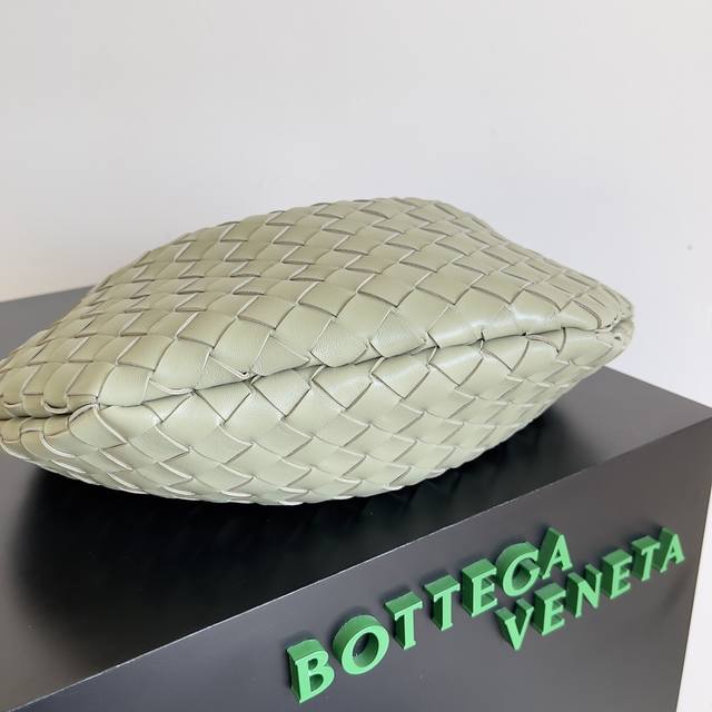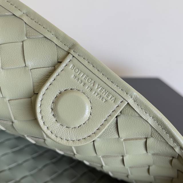 Inspired by the bird in the sky by 20th-century modern sculptor Brancusi, the Muse brass handles feature unique craftsmanship, making each handle one-of-a-kind and embodying a precious sculptural quality. Carrying the Sardine creates a sophisticated and modern look! The Sardine handbag uses Intrecciato weaving to highlight the brand's craftsmanship heritage. The handle design creates a striking contrast, presenting an artistic design concept. The Muse brass finish is completed through multiple processes, ensuring that each handle is unique. Style No.: 716082 Dimensions: 36*3*24cm Color: Travertine Green