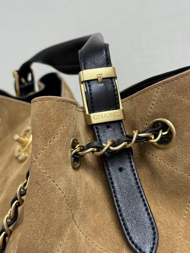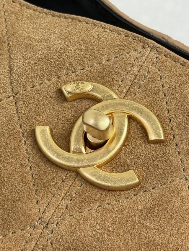 A new model from the 25A series is here! This suede and leather bag is a true masterpiece! A fusion of premium suede and smooth calfskin creates a truly luxurious look. The diamond pattern and classic double C logo create a subtle, luxurious suede and glossy leather look, creating a layered look! The distressed gold chain is adjustable, perfect for carrying over one shoulder or across the body! It's spacious enough to hold a phone, lipstick, and a cushioning cushion