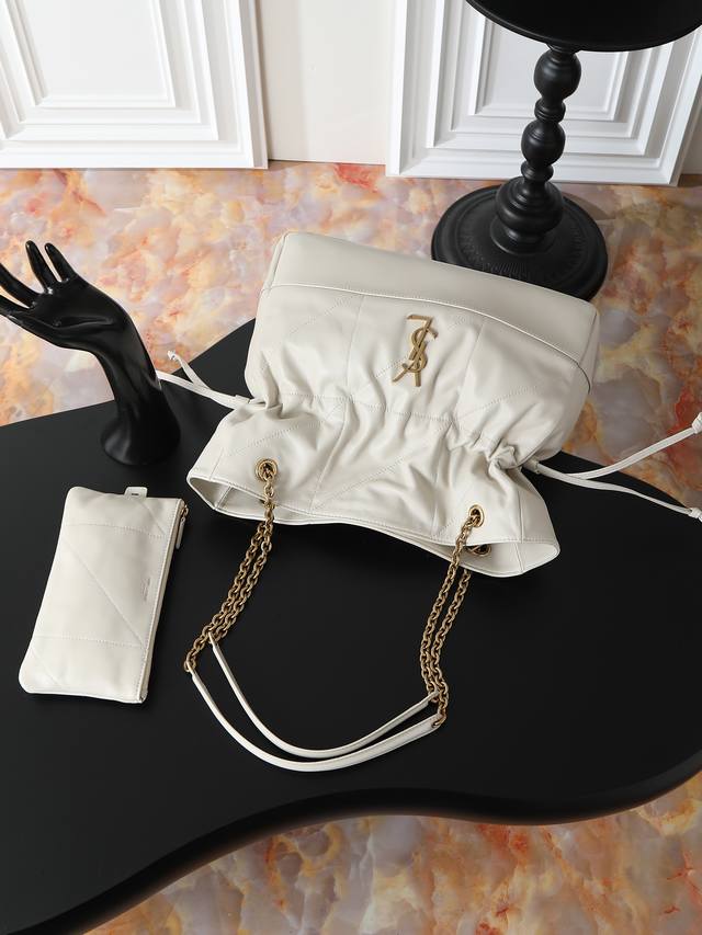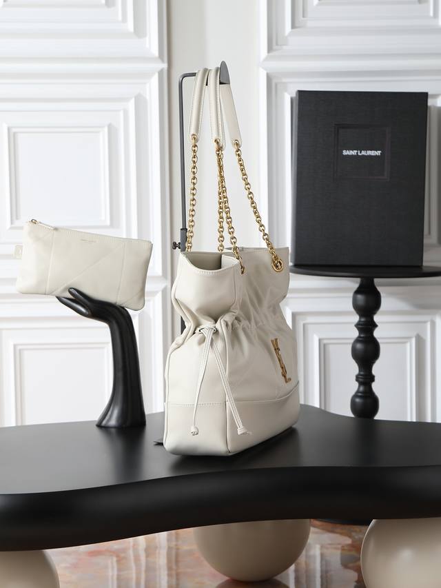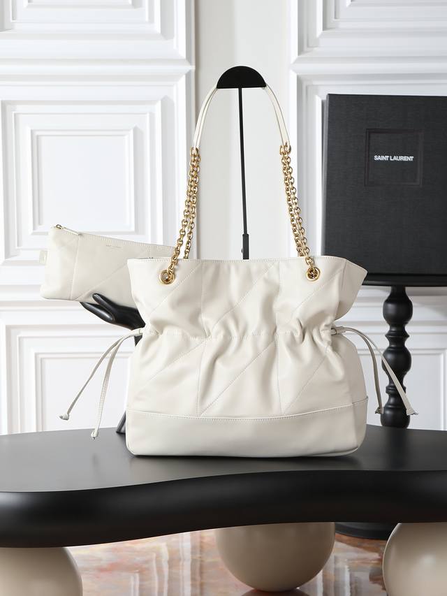 Jamie 4.3 Large Pochon Bucket Bag (Ddd) Made of soft Italian lambskin with a drawstring design, giving the bag a natural and sophisticated pleated look. The metal chain and metal logo on the bag complement each other perfectly. It exudes a relaxed and fashionable vibe. The lucky bag design is unique and stylish! Extra large capacity (Ddd) Can fit a laptop (Ddd) Model: 809824 (Ddd) Dimensions: 35