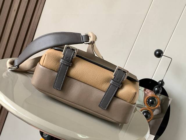 L0Ewe's new Xs Military Messenger bag is a classic messenger bag. This model has changed the style of classic messenger bags in the past and designed a zipper main compartment with a buckle on the front to store private items, which is more secure and user-friendly. It has two built-in card slots, cigarettes, mobile phones, power banks, and wallets. The storage index is ideal for 5 stars